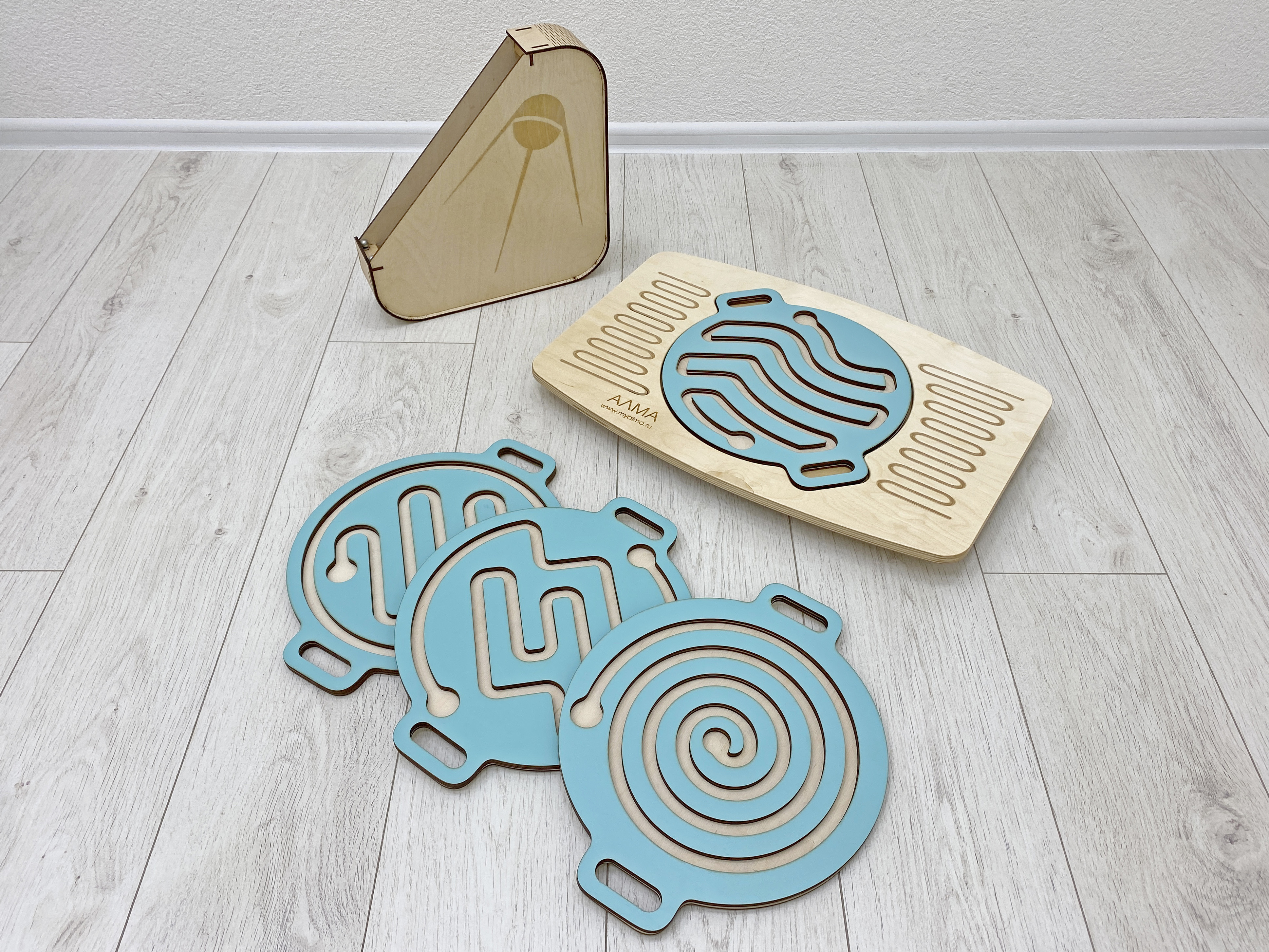 Это игровой нейротренажёр для улучшения координации движений, развития внимания и логического мышления. Состоит из балансира для ног и четырёх лабиринтов-балансиров для рук, которые вкладываются в специальное углубление на ножном балансире.