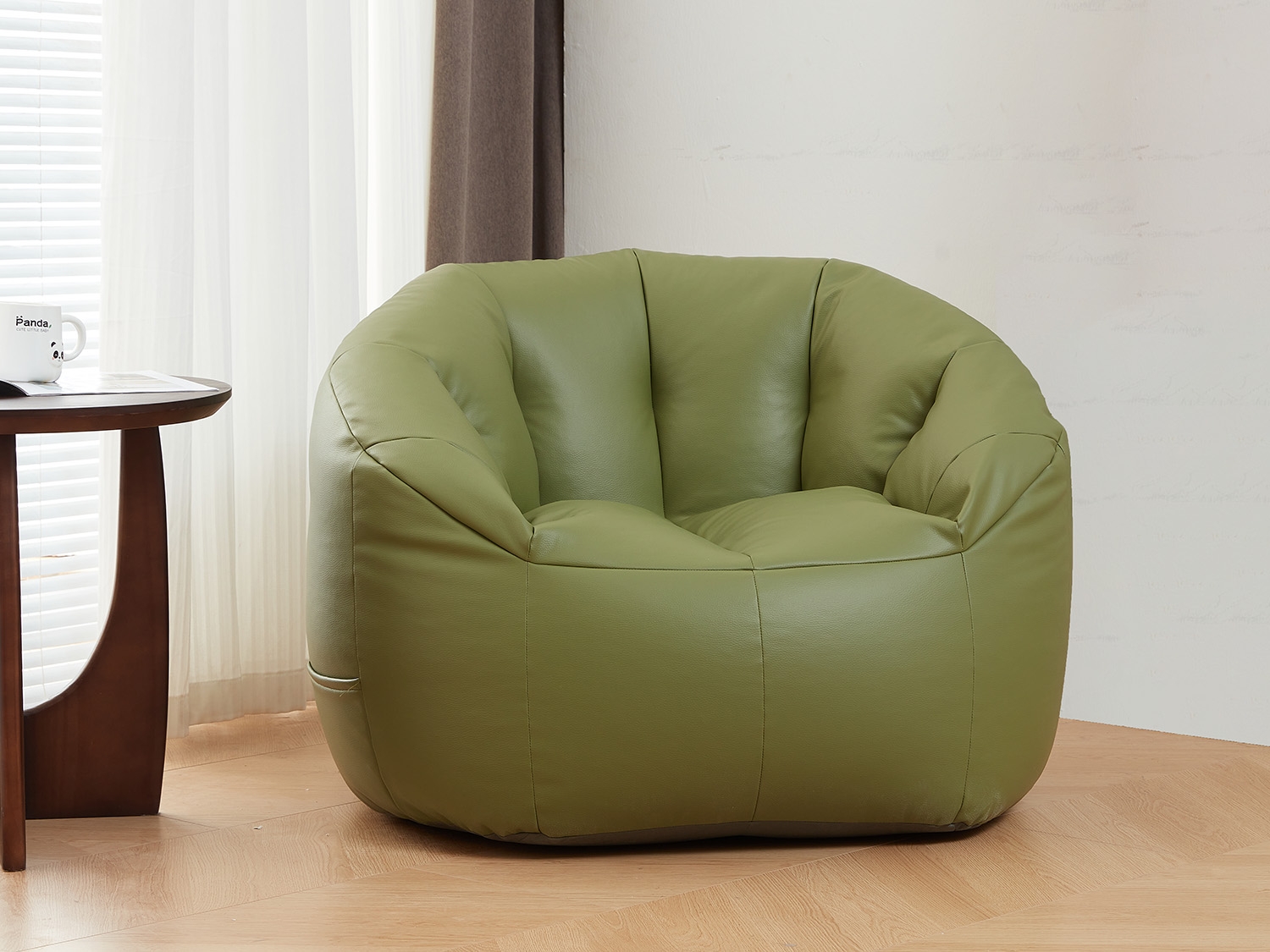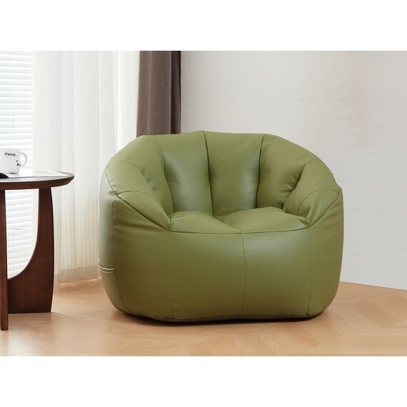 Бескаркасный пуф изготовлен из износостойкой экокожи и наполнен пенополистиролом, что обеспечивает его прочность и легкость.