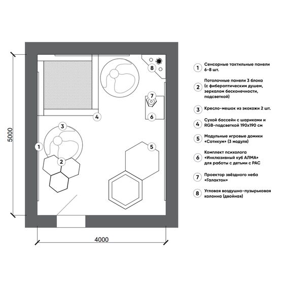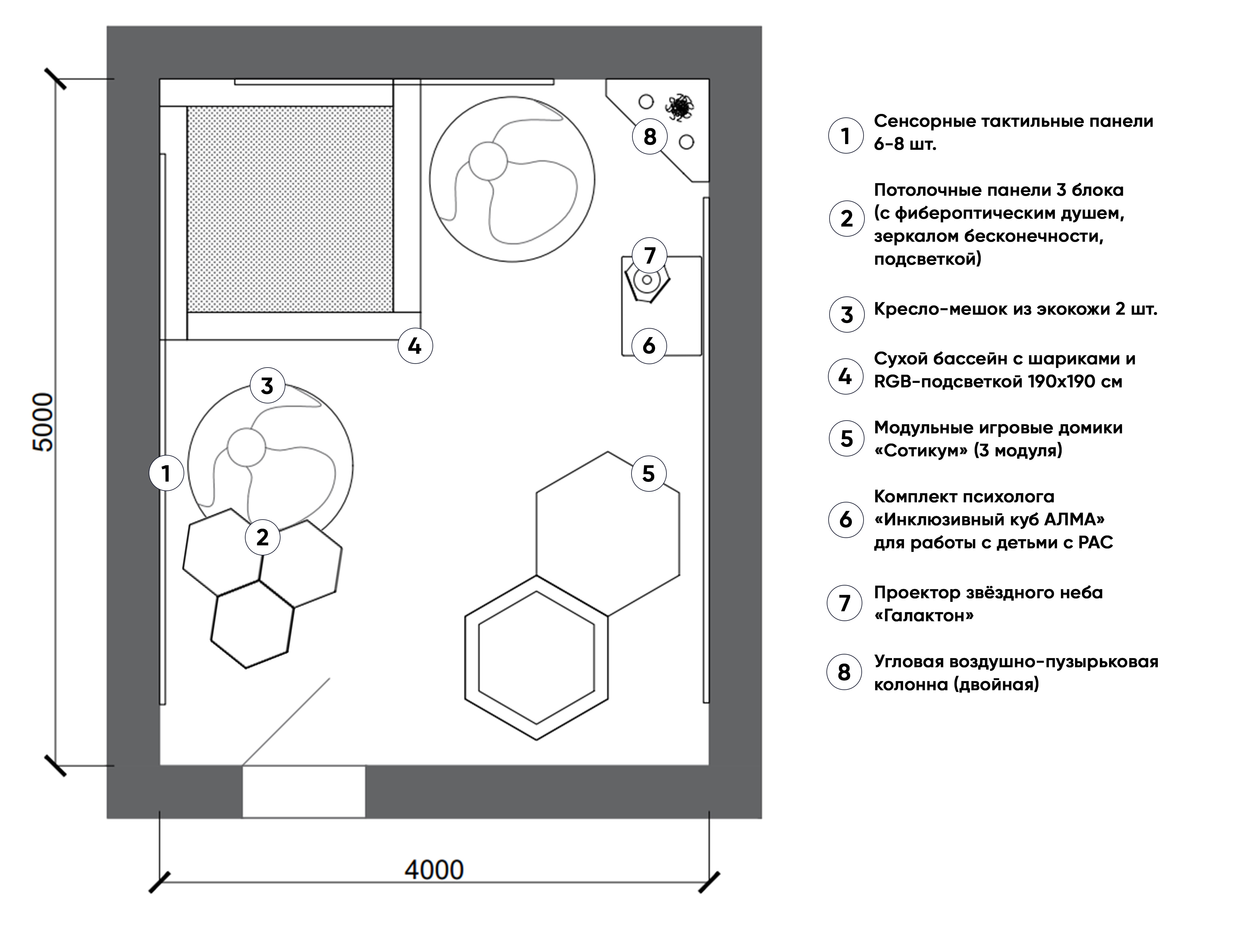 Описание Комплект оборудования для сенсорной комнаты 20 м2 [А261]