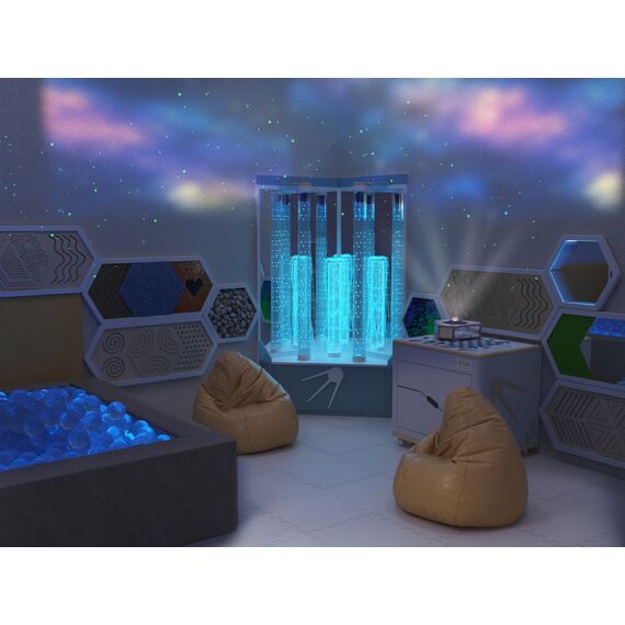 Готовое решение для создания сенсорной комнаты в детских садах, школах, больницах, коррекционных центрах, кабинетах детских психологов. Продуманная комплектация как нельзя лучше подходит для работы с сенсорными системами ребёнка, снятия психоэмоционального напряжения и коррекции различных расстройств.