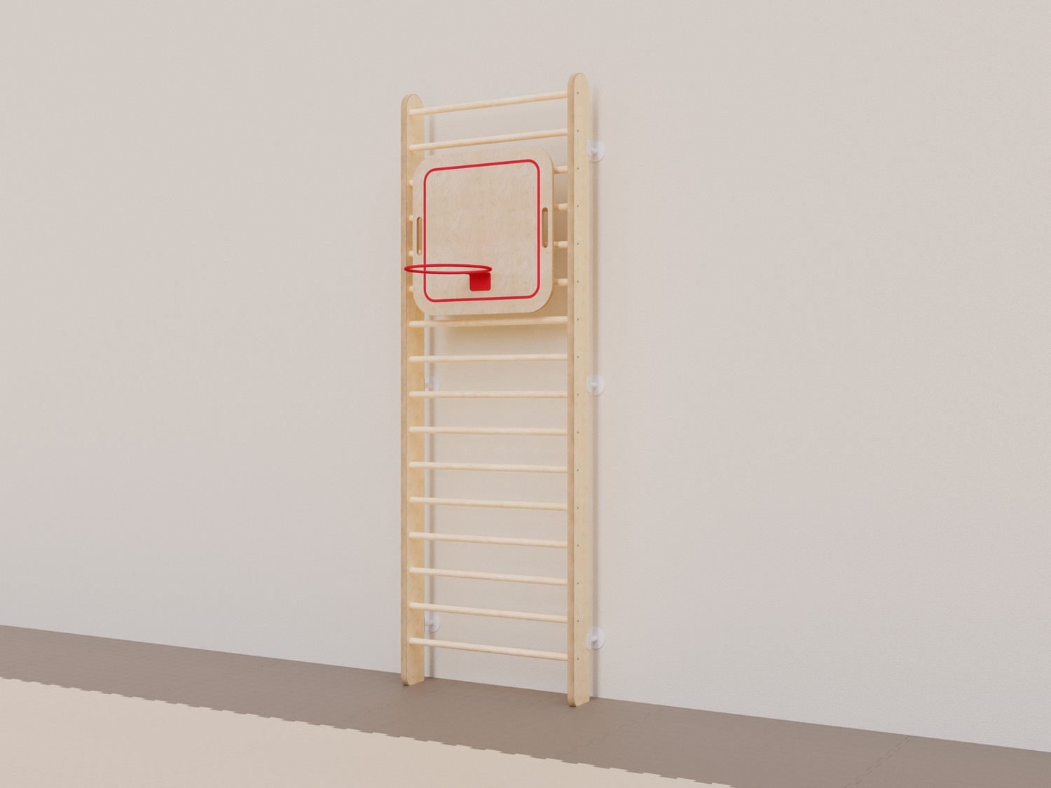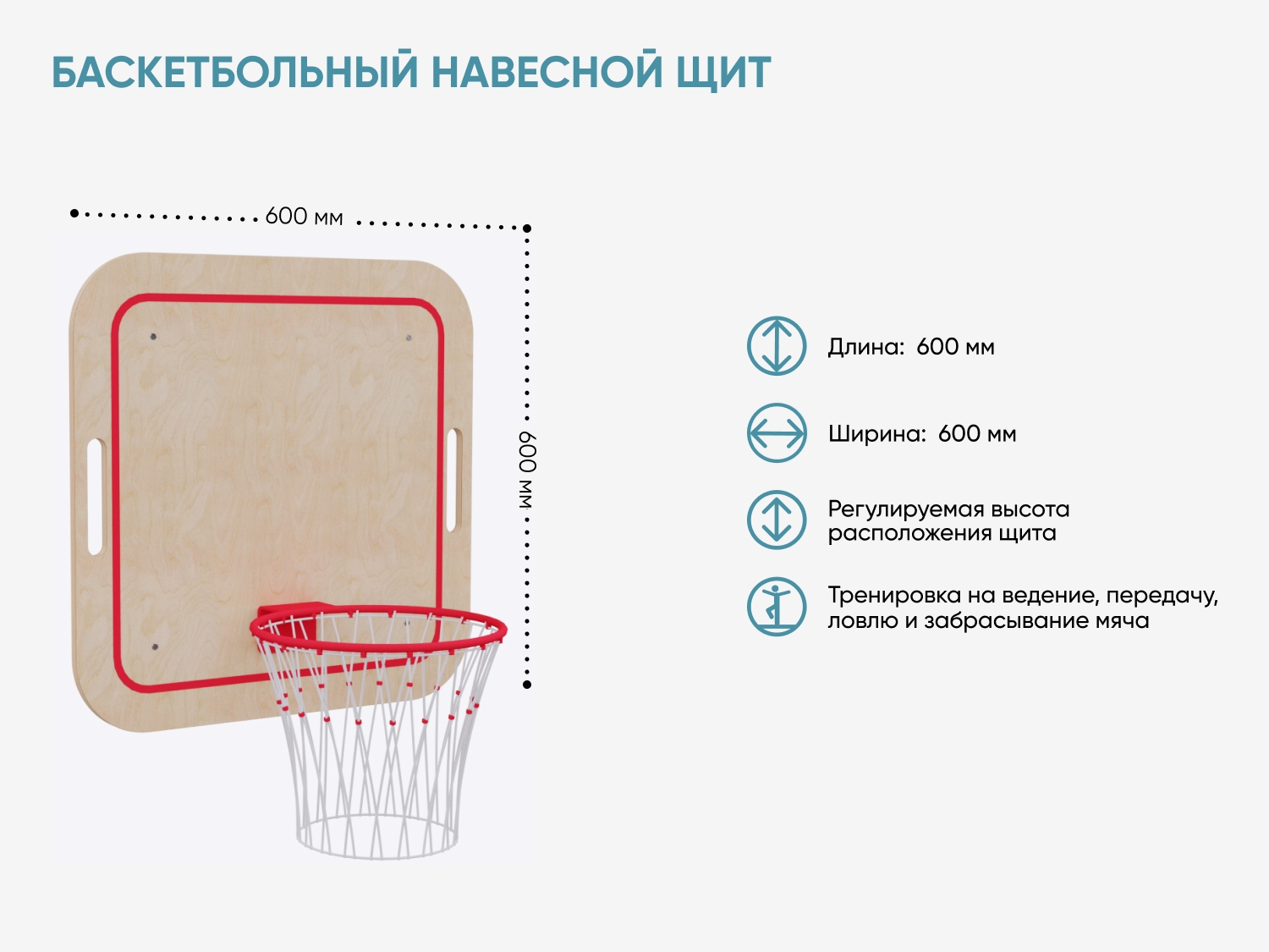 Навесной баскетбольный щит — снаряд для обучения детей метанию в цель и знакомству со спортивной игрой. Разработан специально для использования в комплекте с гимнастической стенкой. Конструкция позволяет выбирать высоту расположения щита с учетом задач педагога и возможностей детей.