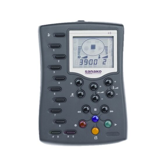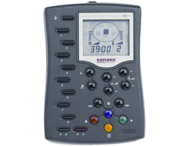 Sanako Lab 100 Аудио-пульт находится на каждом рабочем месте учащегося и позволяет подключаться к разным учебным активностям, например, отвечать на вопросы тестирования, работать с аудиозаписями, управлять громкостью звука, осуществлять запись своего голоса. Статус текущей активности отображается на экране устройства. Также аудио-пульт является частью аппаратного интерфейса преподавателя.