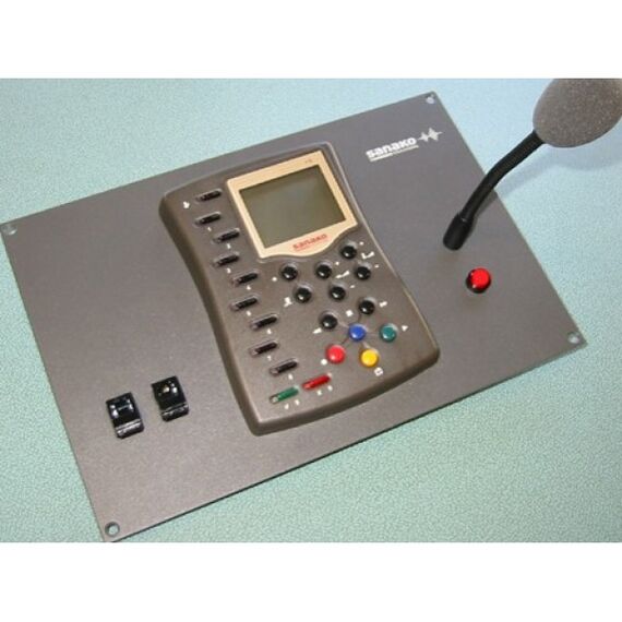 Sanako Lab 100 STS Панель с парным микрофоном на гусиной шее - компонент рабочего места "Делегата". На корпусе панели находятся 2 порта для подключения гарнитур, кнопка включения/выключения, парный микрофон на гусиной шее и слот для размещения аудио-пульта учащегося.