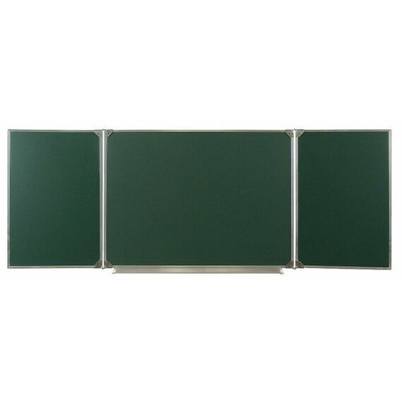 Доска школьная настенная 3-хэлементная для письма мелом и маркером, 5 рабочих поверхностей. В качестве рабочих полотен используются только высокопрочные материалы, специально предназначенные для школьных досок.
