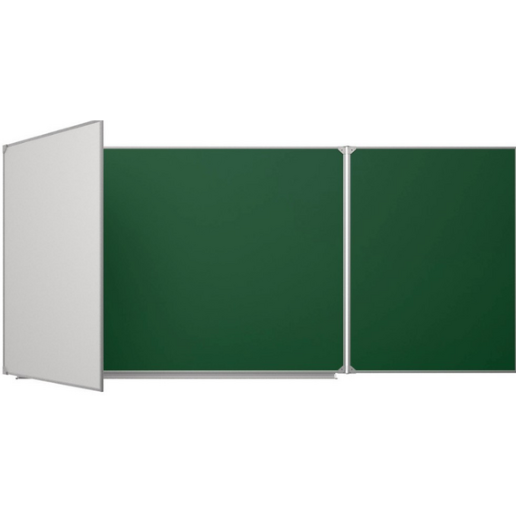 Доска школьная настенная 3-хэлементная для письма мелом и маркером, 5 рабочих поверхностей. В качестве рабочих полотен используются только высокопрочные материалы, специально предназначенные для школьных досок.