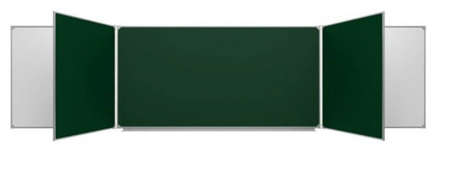 Доска школьная настенная 5-хэлементная для письма мелом, 7 рабочих поверхностей. В качестве рабочих полотен используются только высокопрочные материалы, специально предназначенные для школьных досок.