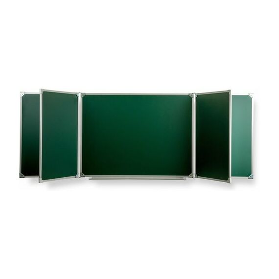Доска школьная настенная 5-хэлементная для письма мелом, 7 рабочих поверхностей. В качестве рабочих полотен используются только высокопрочные материалы, специально предназначенные для школьных досок.