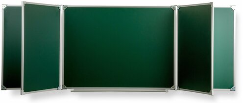 Доска школьная настенная 5-хэлементная для письма мелом, 7 рабочих поверхностей. В качестве рабочих полотен используются только высокопрочные материалы, специально предназначенные для школьных досок.