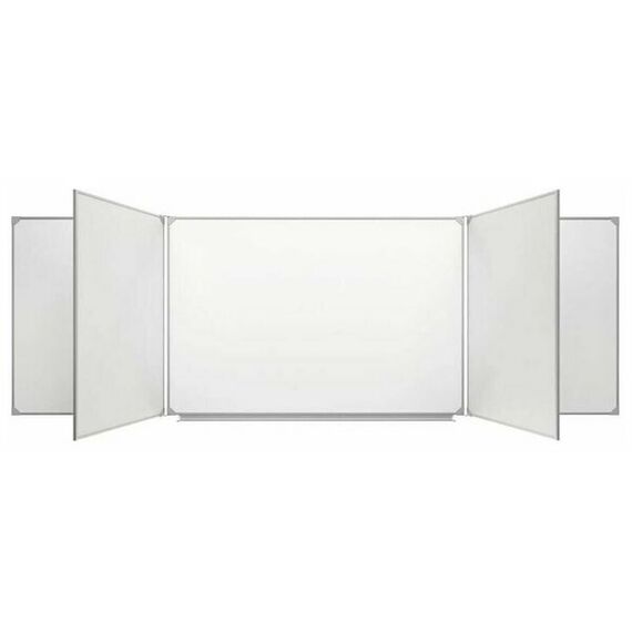 Рабочая поверхность изготовлена из стального полимерного листа, обрамление — высокопрочный алюминиевый профиль, благодаря чему доска имеет высокую износоустойчивость, прочность и надежность конструкции. 1-й элемент это центральная часть школьной доски, которая крепится к стене, а створки (2-й и 3-й элементы), могут независимо открываться и закрываться от плоскости центральной части доски до плоскости стены. Также есть статичные 4 и 5 элементы. Петли многоэлементных досок рассчитаны на нагрузку свыше 100 кг. Имеется лоток для мела/маркера и принадлежностей.