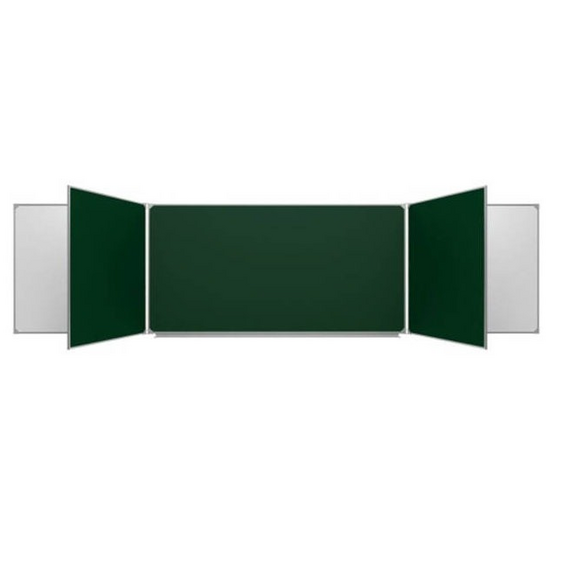 Доска школьная настенная 5-х элементная для письма мелом и маркером, 7 рабочих поверхностей. В качестве рабочих полотен используются только высокопрочные материалы, специально предназначенные для школьных досок.