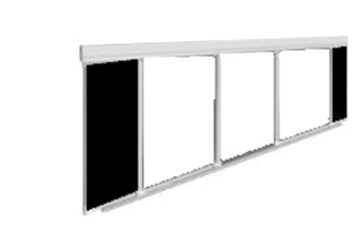 Функционально состоит из 4-х поверхностей для писания мелом, две из которых свободно перемещаются по рельсовой системе, закрывая интерактивную доску, встроенную в центр рельсовой системы.