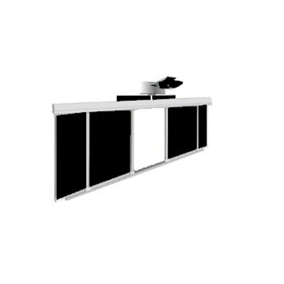 Функционально состоит из 4-х поверхностей для писания мелом, две из которых свободно перемещаются по рельсовой системе, закрывая интерактивную доску, встроенную в центр рельсовой системы.