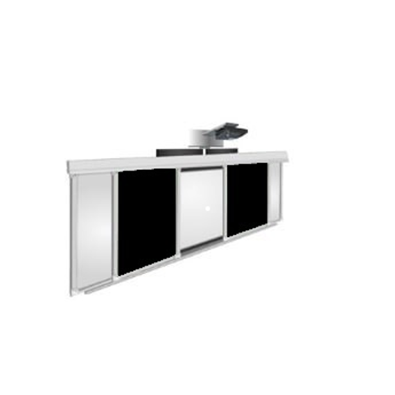 Функционально состоит из 4-х поверхностей для писания мелом, две из которых свободно перемещаются по рельсовой системе, закрывая интерактивную доску, встроенную в центр рельсовой системы.