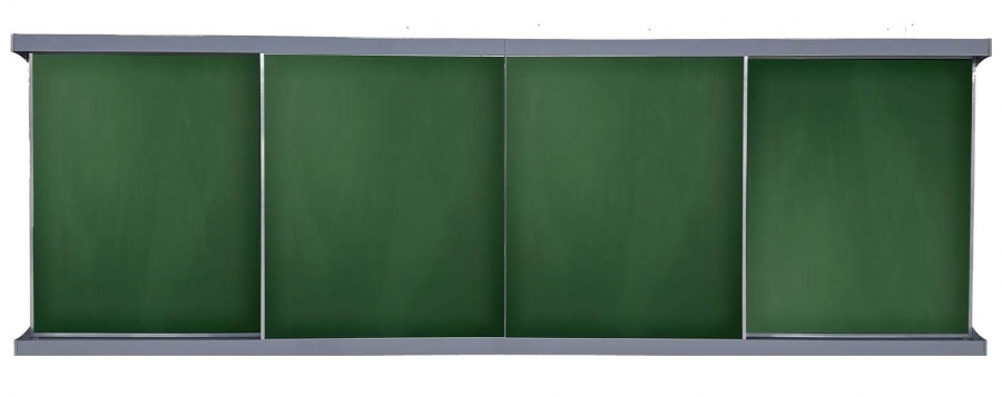 Рельсовая система модульного типа – это система из двух стационарных и двух передвижных классных досок (меловых/маркерных). Классные доски установлены в двух модулях, представляющих из себя собранную конструкцию из алюминиевых направляющих и профилей. В центре расположено пространство для установки интерактивной панели.