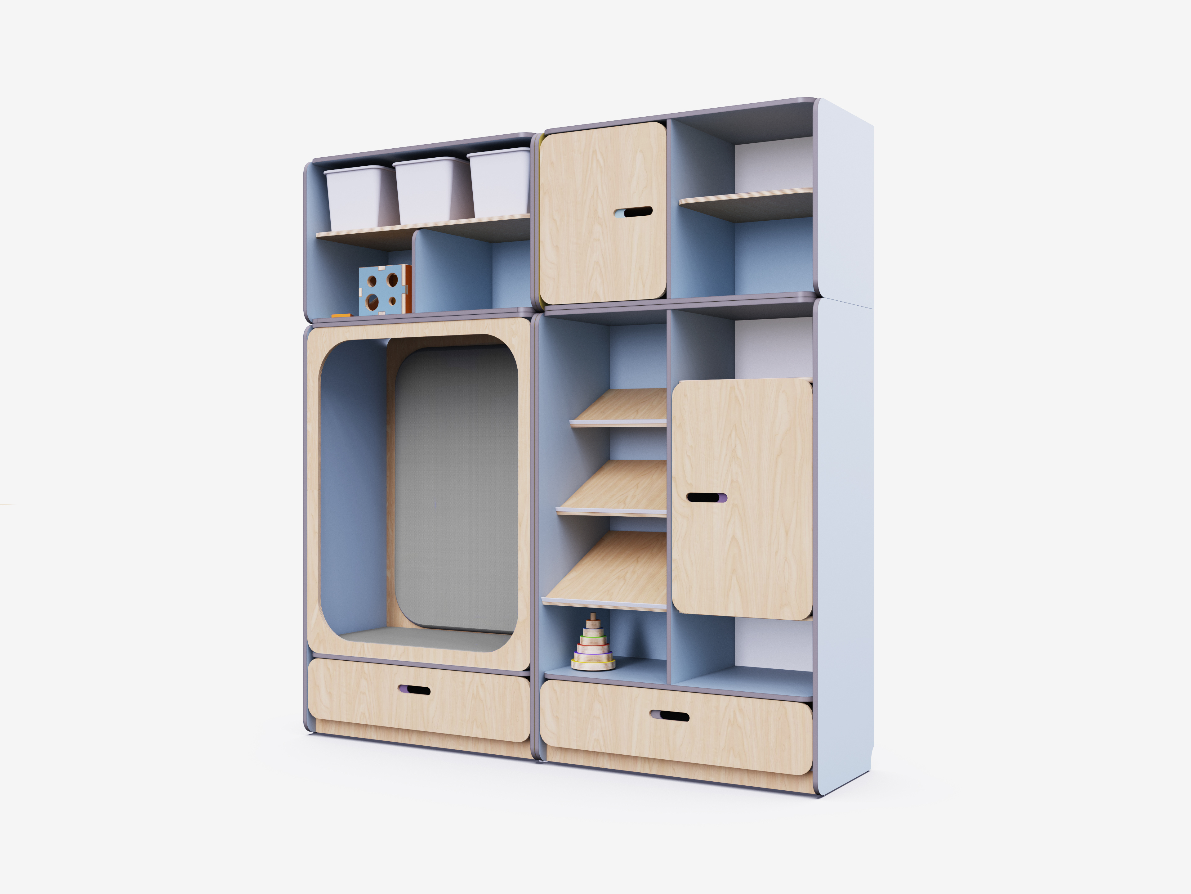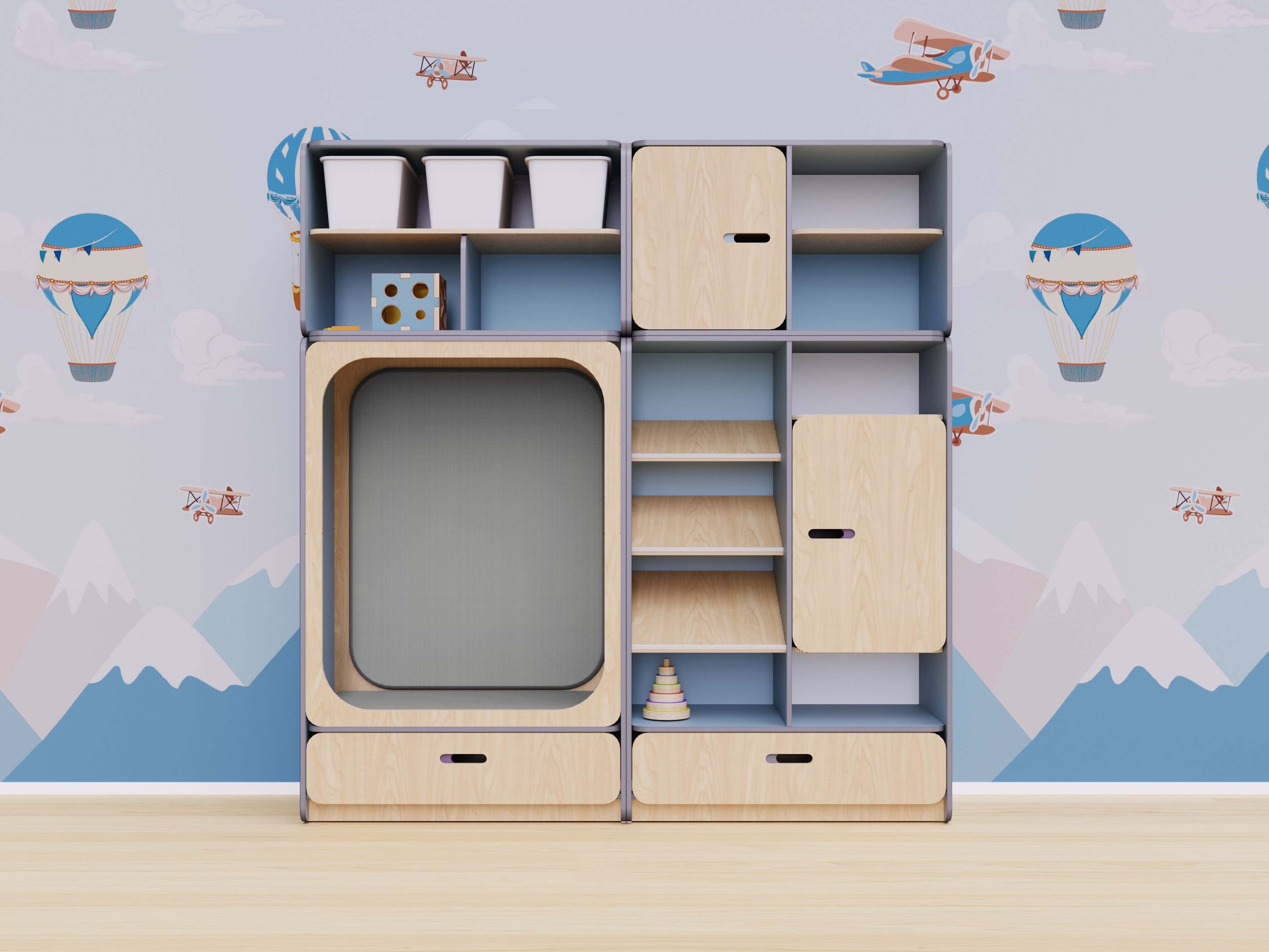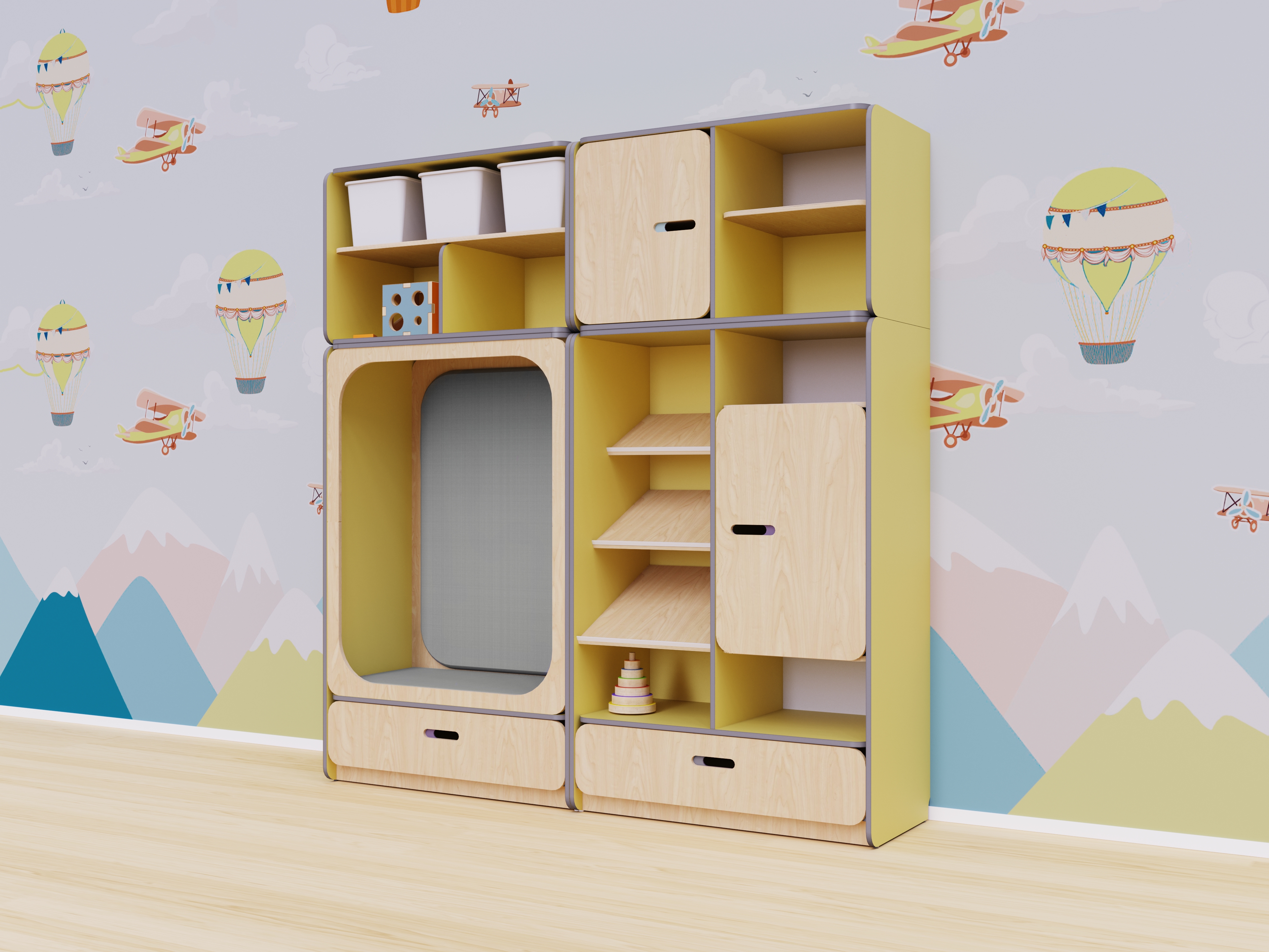- Открытые ниши для легкого доступа детей к их любимым предметам.
