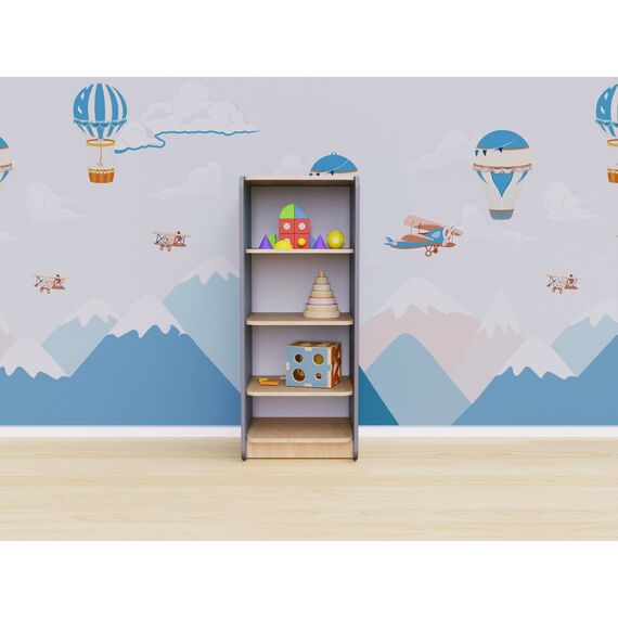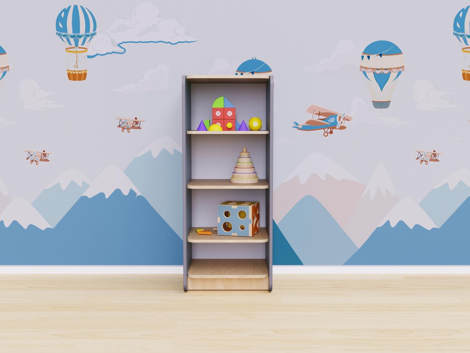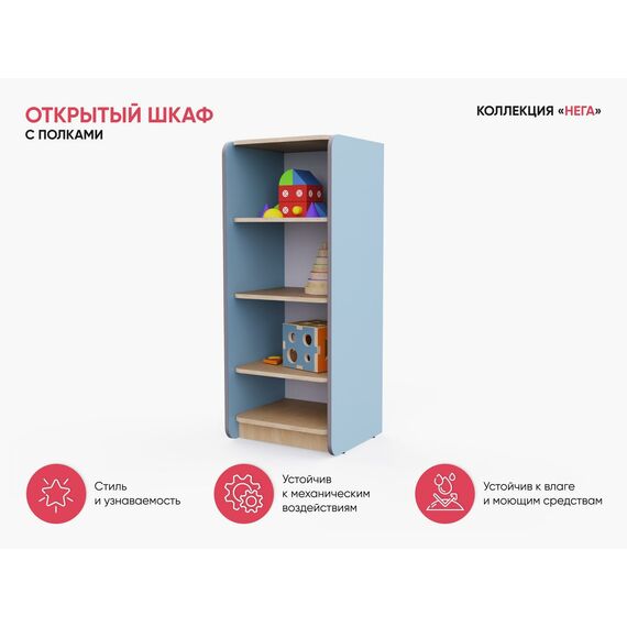 Открытый шкаф для оборудования игровых комнат в детских садах и учреждениях дополнительного образования. Этот простое и удобное решение для хранения книг, коробок с настольными играми, пазлов и игрушек.