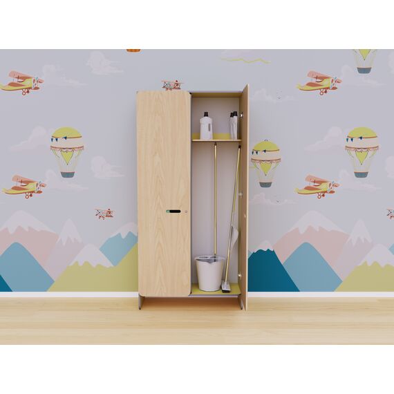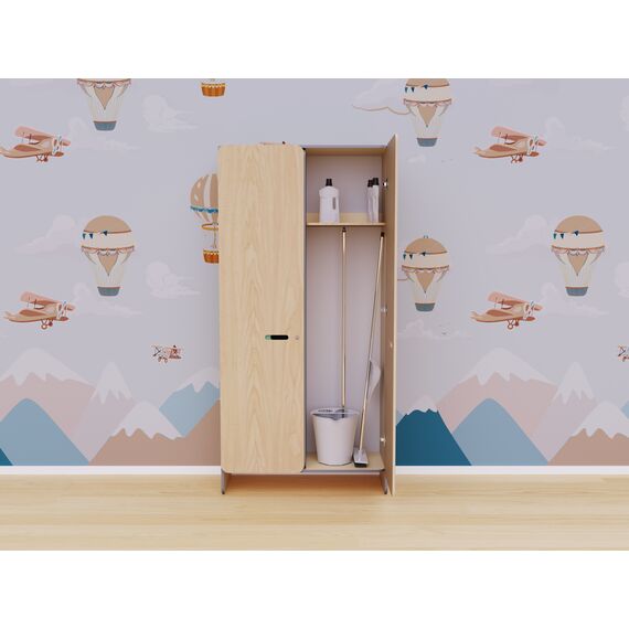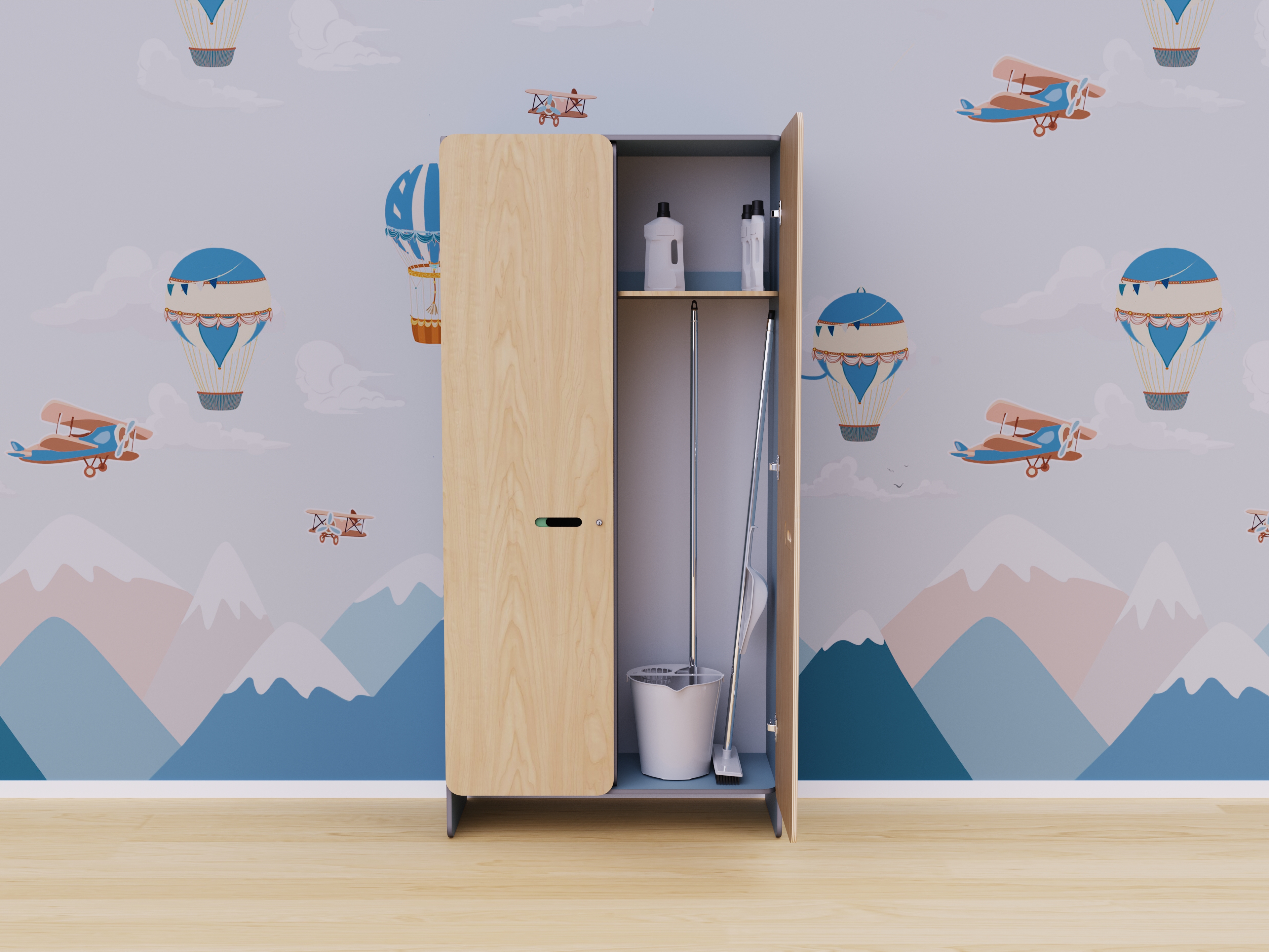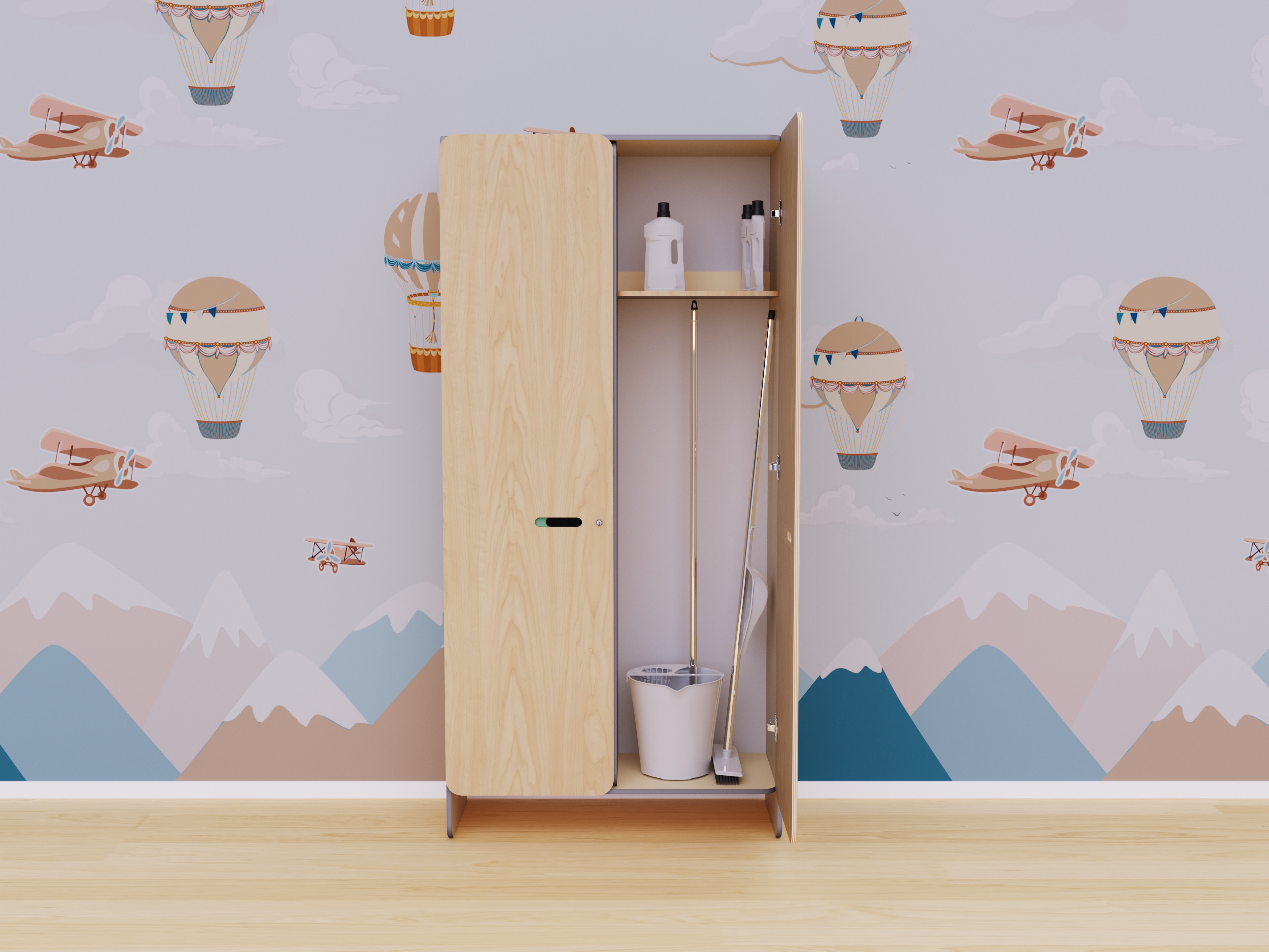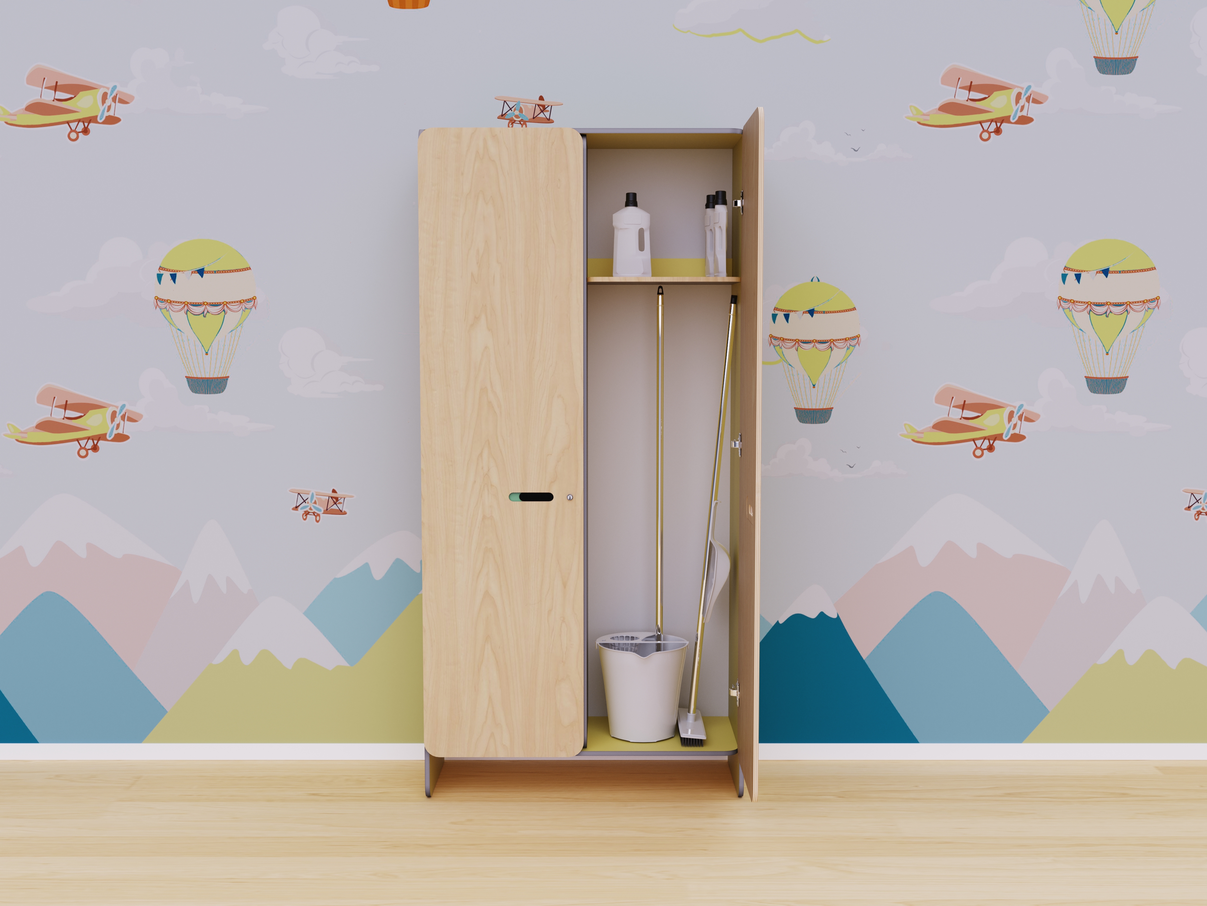 Изготовлен из высококачественных, экологически безопасных материалов. Шкаф устойчив к воздействию влаги, моющих и дезинфицирующих средств. Скругленные края и качественная обработка обеспечивают безопасность использования, а соответствие нормативам СанПиН и требованиям противопожарной безопасности делает его идеальным выбором для детских учреждений.