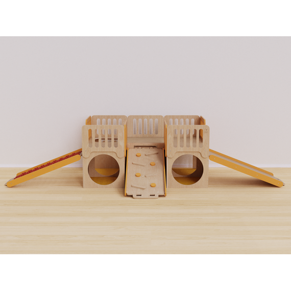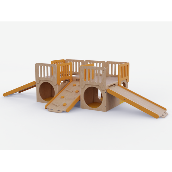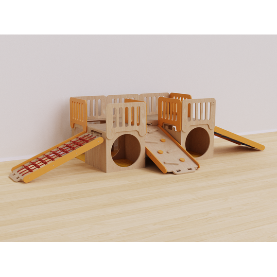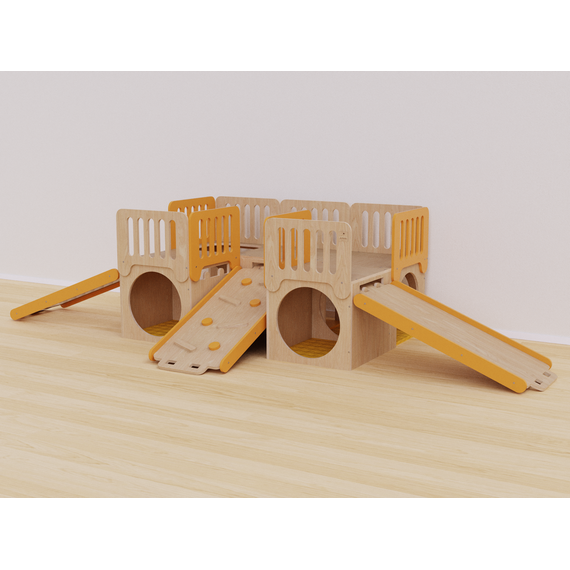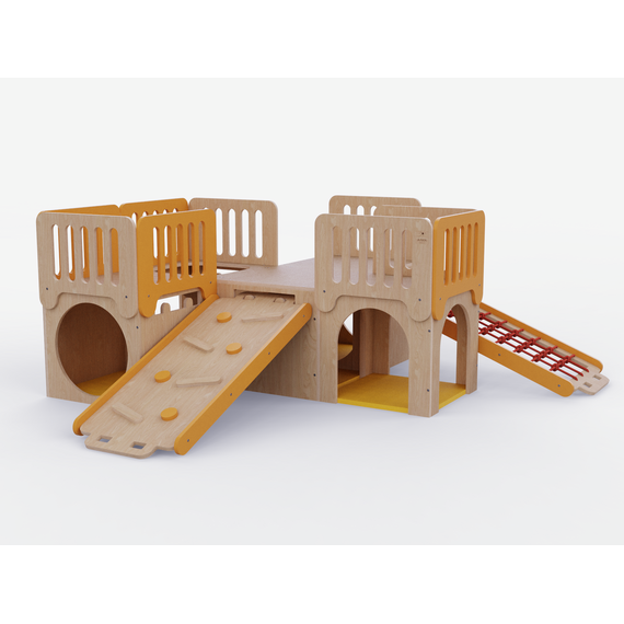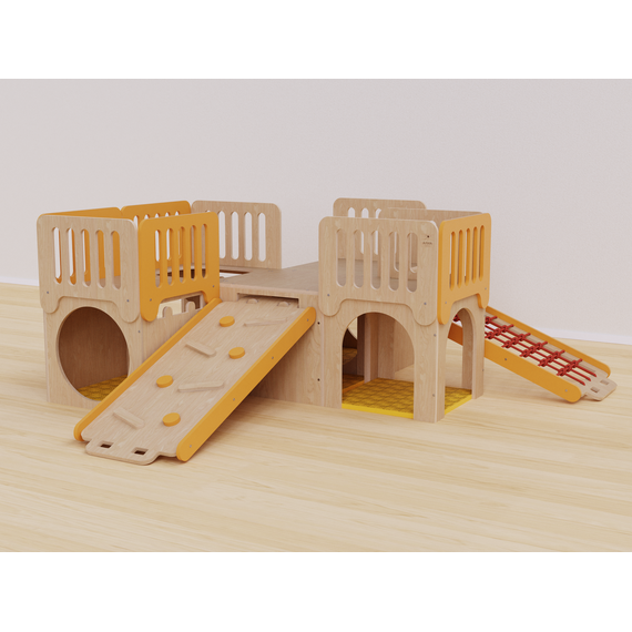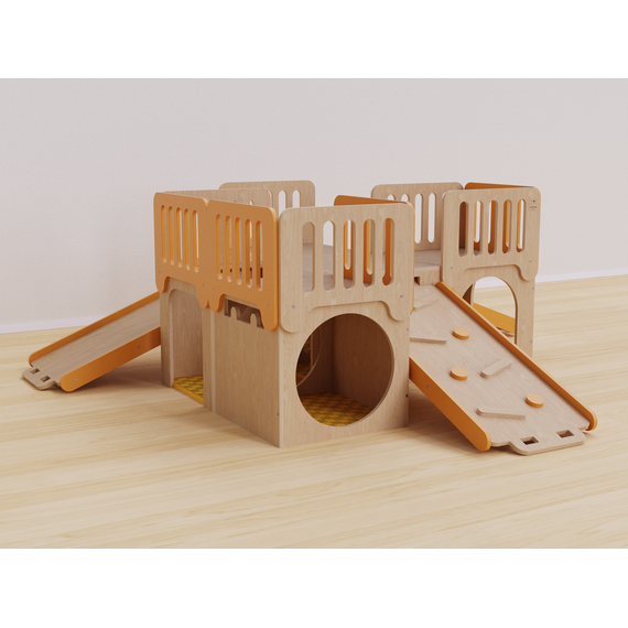 Надежная конструкция выдержит самые активные игры малышей, скругленные поверхности предупредят возможные травмы, а будто-маты позволят комфортно ползать внутри комплекса.