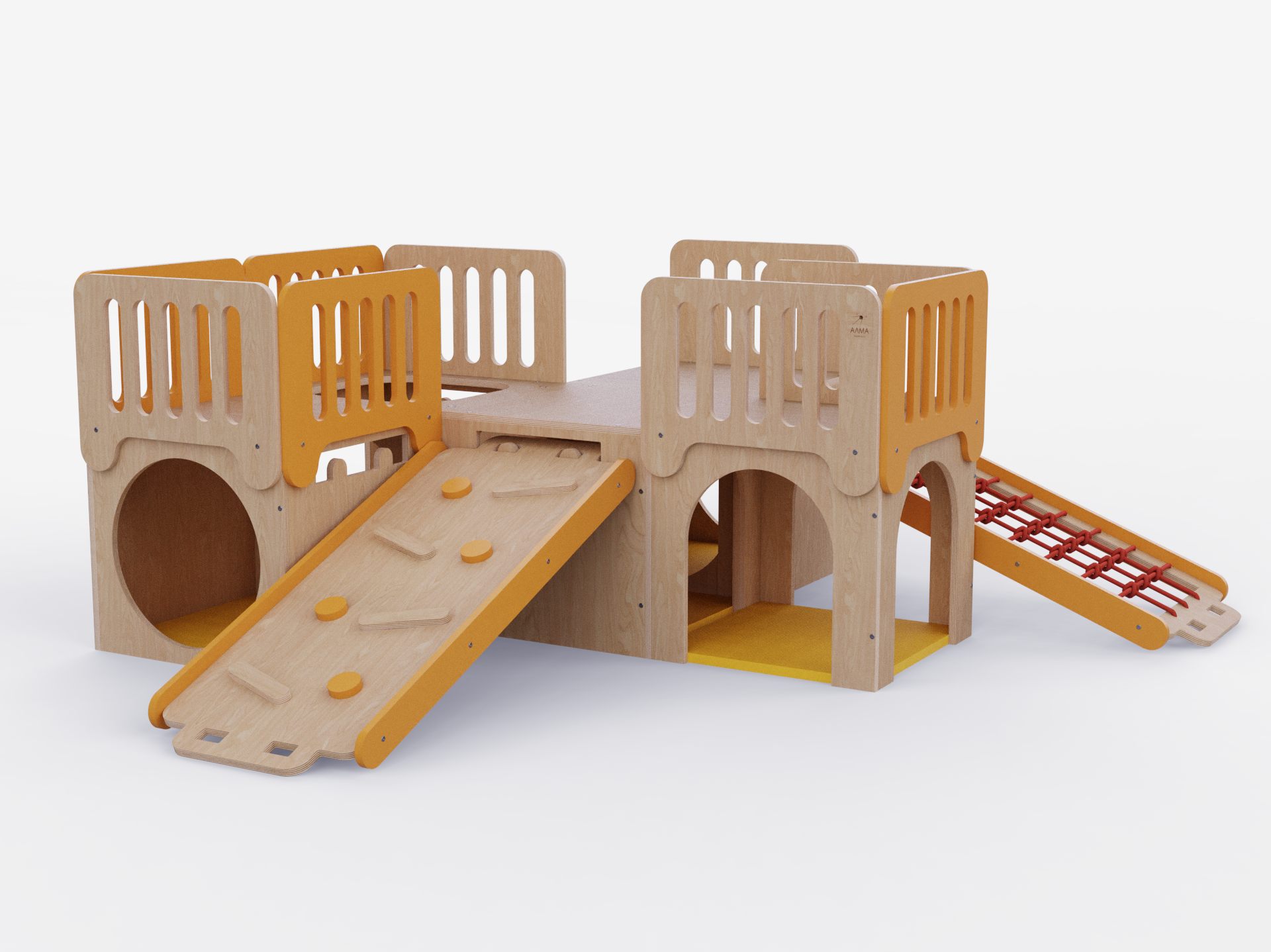 Детский игровой комплекс разработан специалистами компании «АЛМА» для размещения в детских садах и общественных пространствах с детской игровой зоной. Активное движение — главное условие нормального развития малышей, а среда, которая стимулирует выполнение сложных скоординированных движений, — лучшее, что может предложить взрослый.