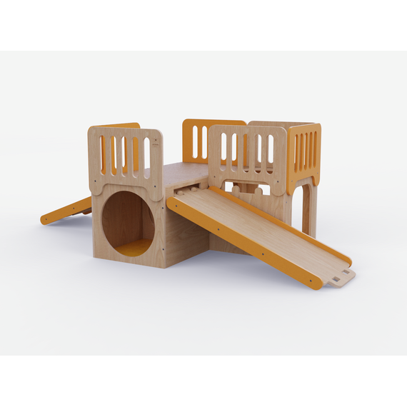 Надежная конструкция выдержит самые активные игры малышей, скругленные поверхности предупредят возможные травмы, а будто-маты позволят комфортно ползать внутри комплекса.