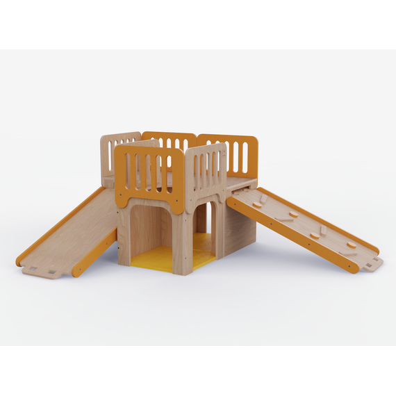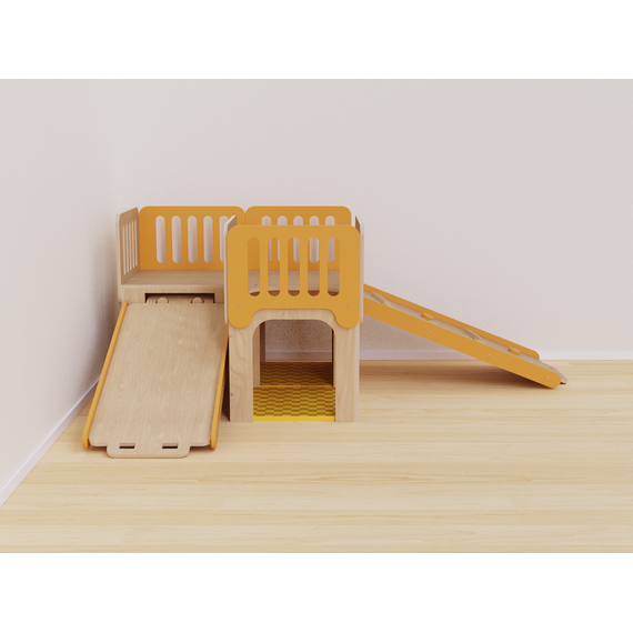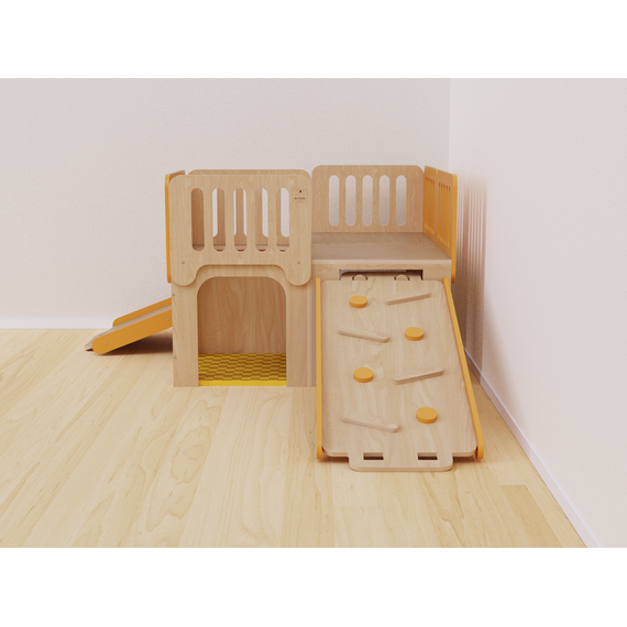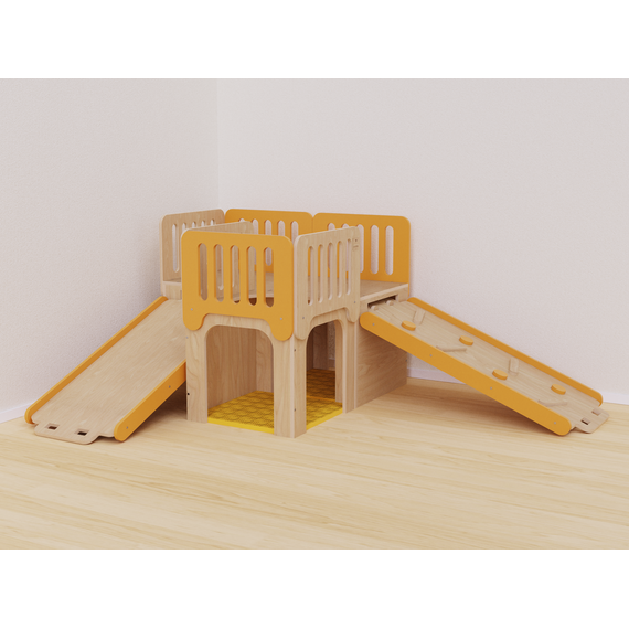 Каждый элемент конструкции соответствует актуальным ГОСТам на детскую мебель, требованиям СанПиНа и пожарной безопасности, рекомендациям ФОП ДО по созданию развивающей среды для детей раннего возраста. Гладкие поверхности просты в уходе: достаточно влажной уборки для поддержания высокого уровня гигиены. Универсальный дизайн позволяет установить комплекс в любое пространство.