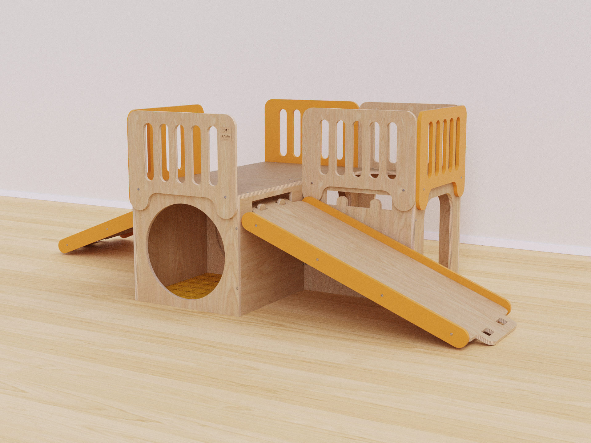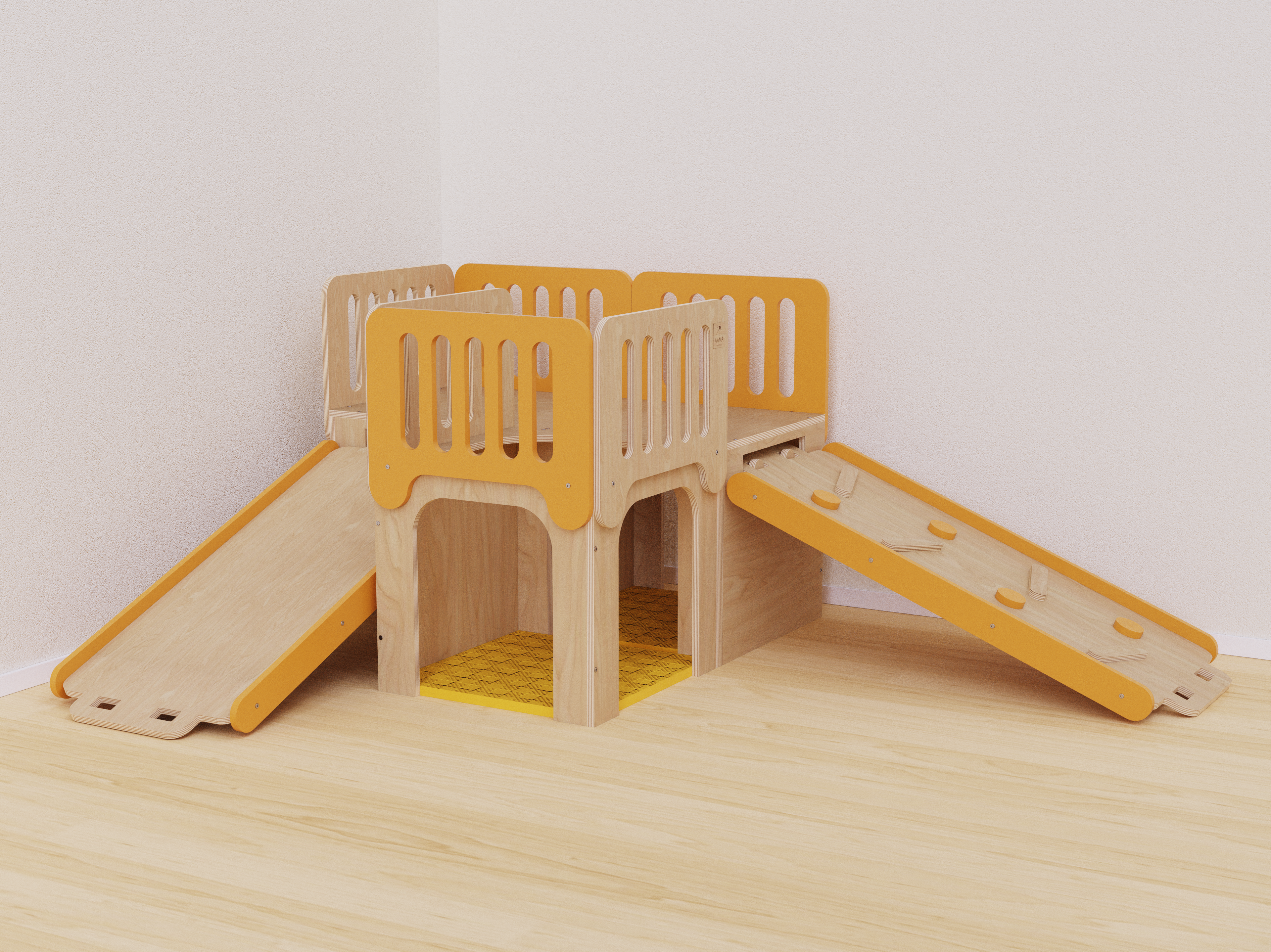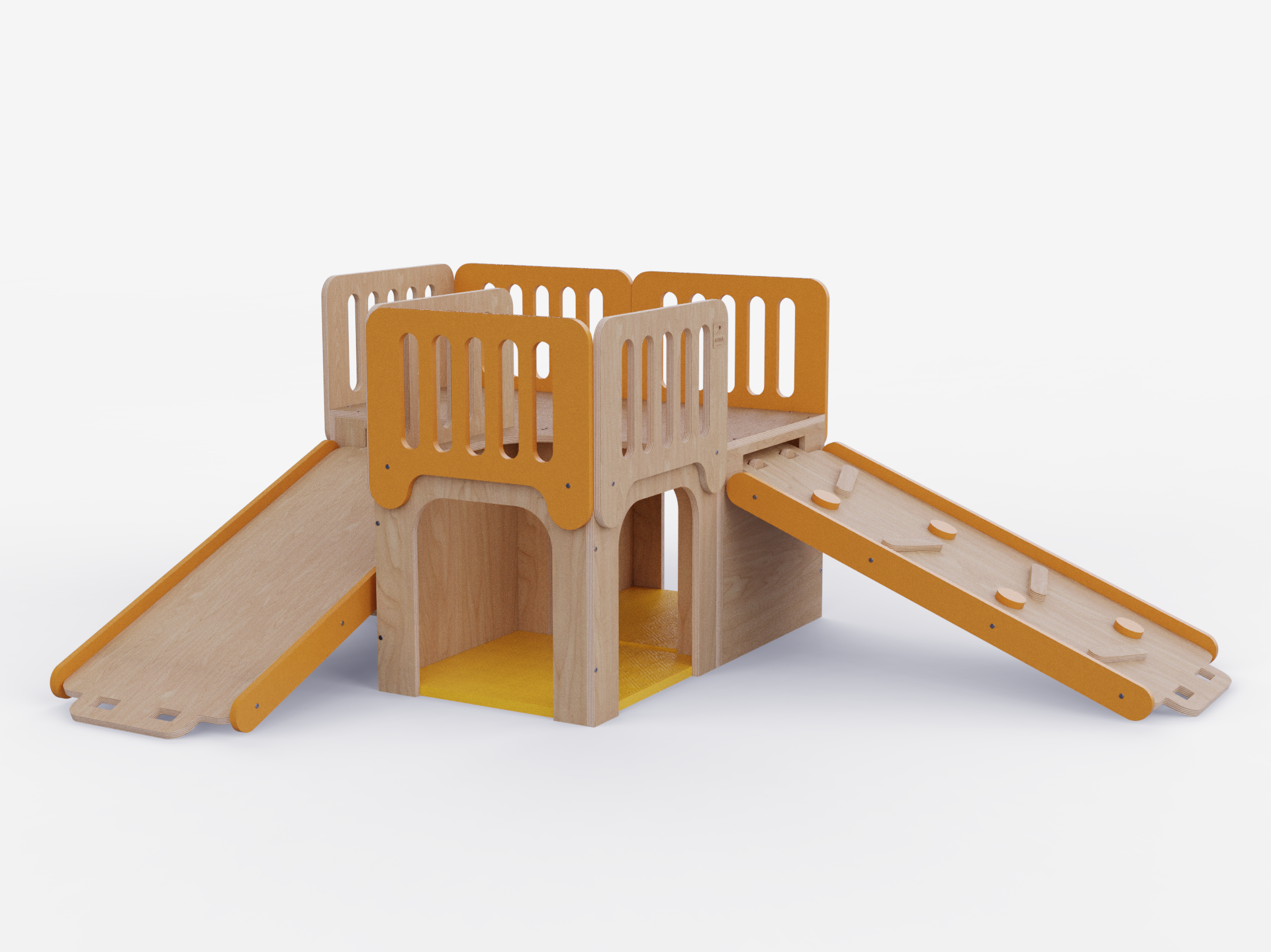 Каждый элемент конструкции соответствует актуальным ГОСТам на детскую мебель, требованиям СанПиНа и пожарной безопасности, рекомендациям ФОП ДО по созданию развивающей среды для детей раннего возраста. Гладкие поверхности просты в уходе: достаточно влажной уборки для поддержания высокого уровня гигиены. Универсальный дизайн позволяет установить комплекс в любое пространство.