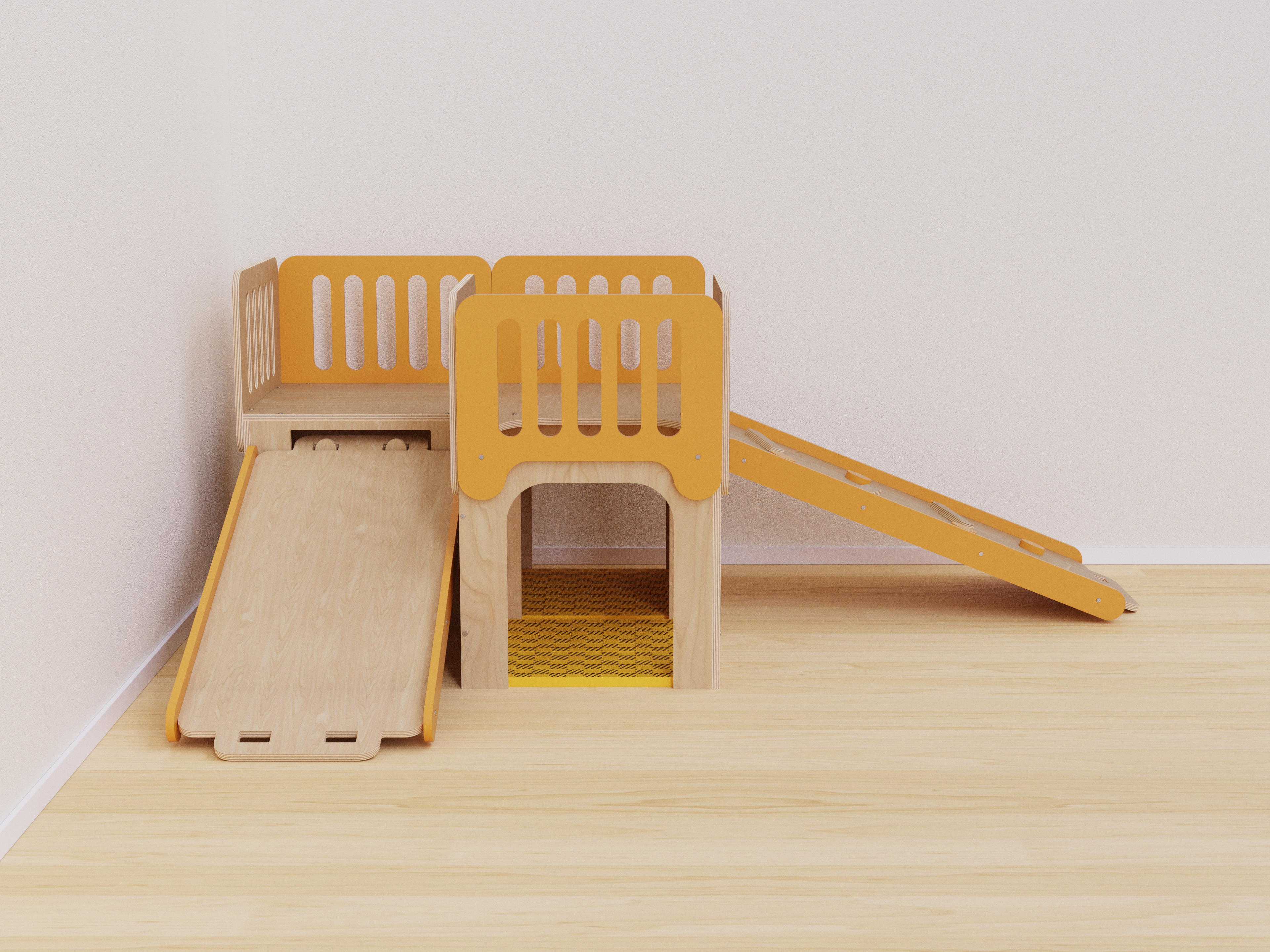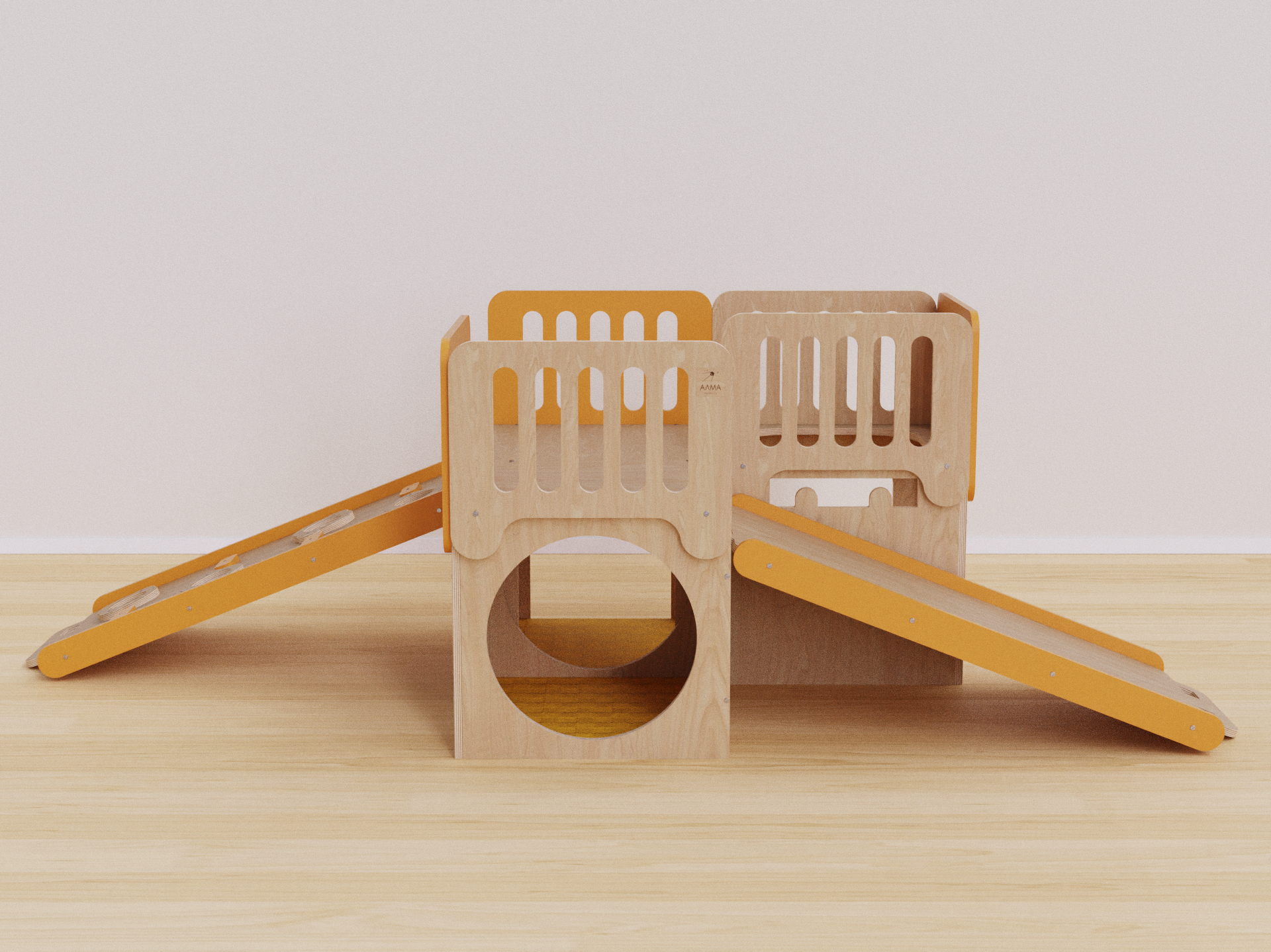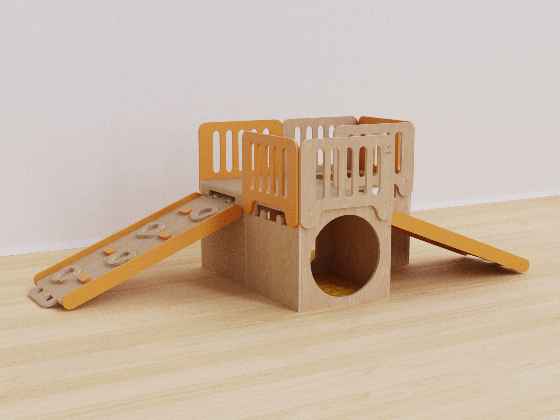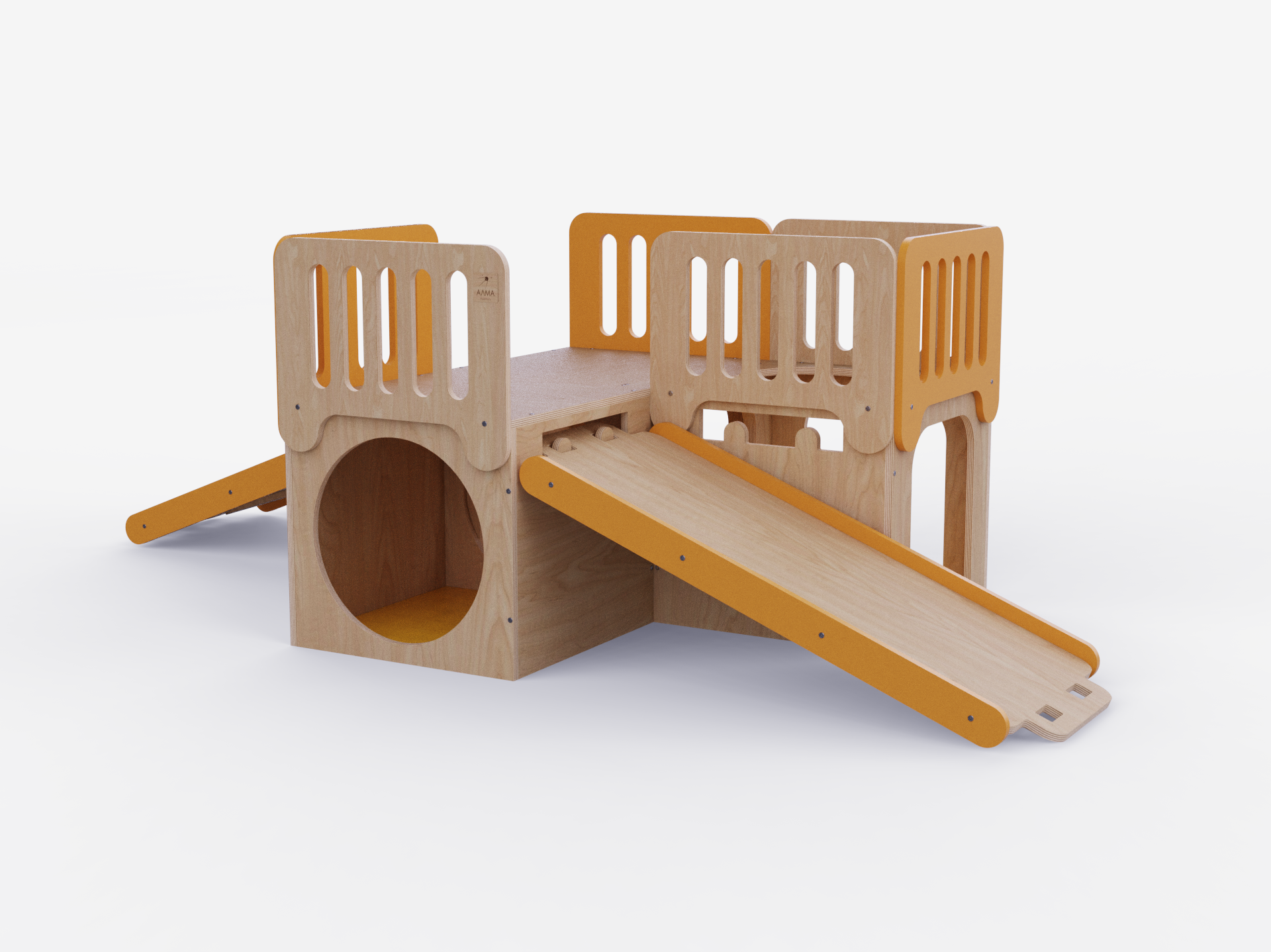 Каждый элемент конструкции соответствует актуальным ГОСТам на детскую мебель, требованиям СанПиНа и пожарной безопасности, рекомендациям ФОП ДО по созданию развивающей среды для детей раннего возраста. Гладкие поверхности просты в уходе: достаточно влажной уборки для поддержания высокого уровня гигиены. Универсальный дизайн позволяет установить комплекс в любое пространство.