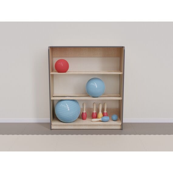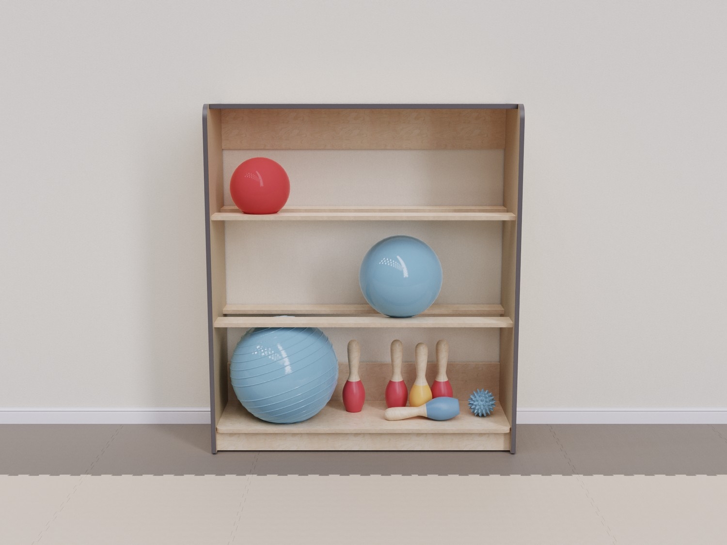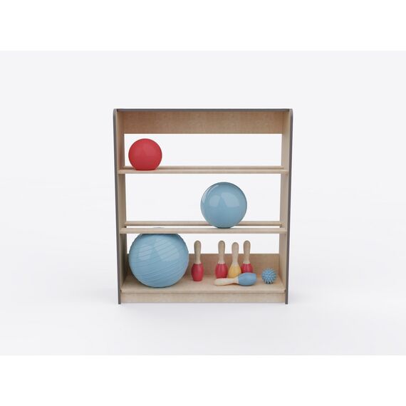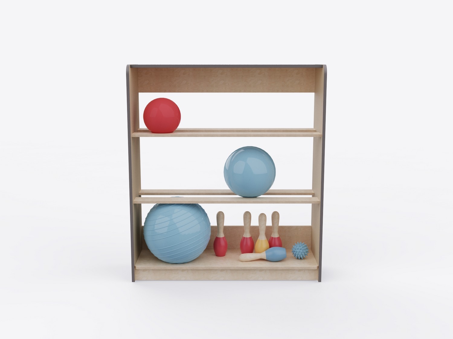 Стеллаж выполнен из высококачественных и прочных материалов, безопасных для использования детьми. Соответствует актуальным ГОСТам на детскую мебель и инвентарь для спортивных залов, требованиям СанПиН и пожарной безопасности, рекомендациям ФОП ДО по созданию развивающей среды для детей. Гладкие поверхности просты в уходе: достаточно влажной уборки для поддержания высокого уровня гигиены.