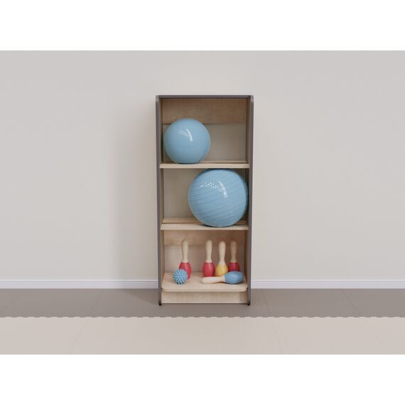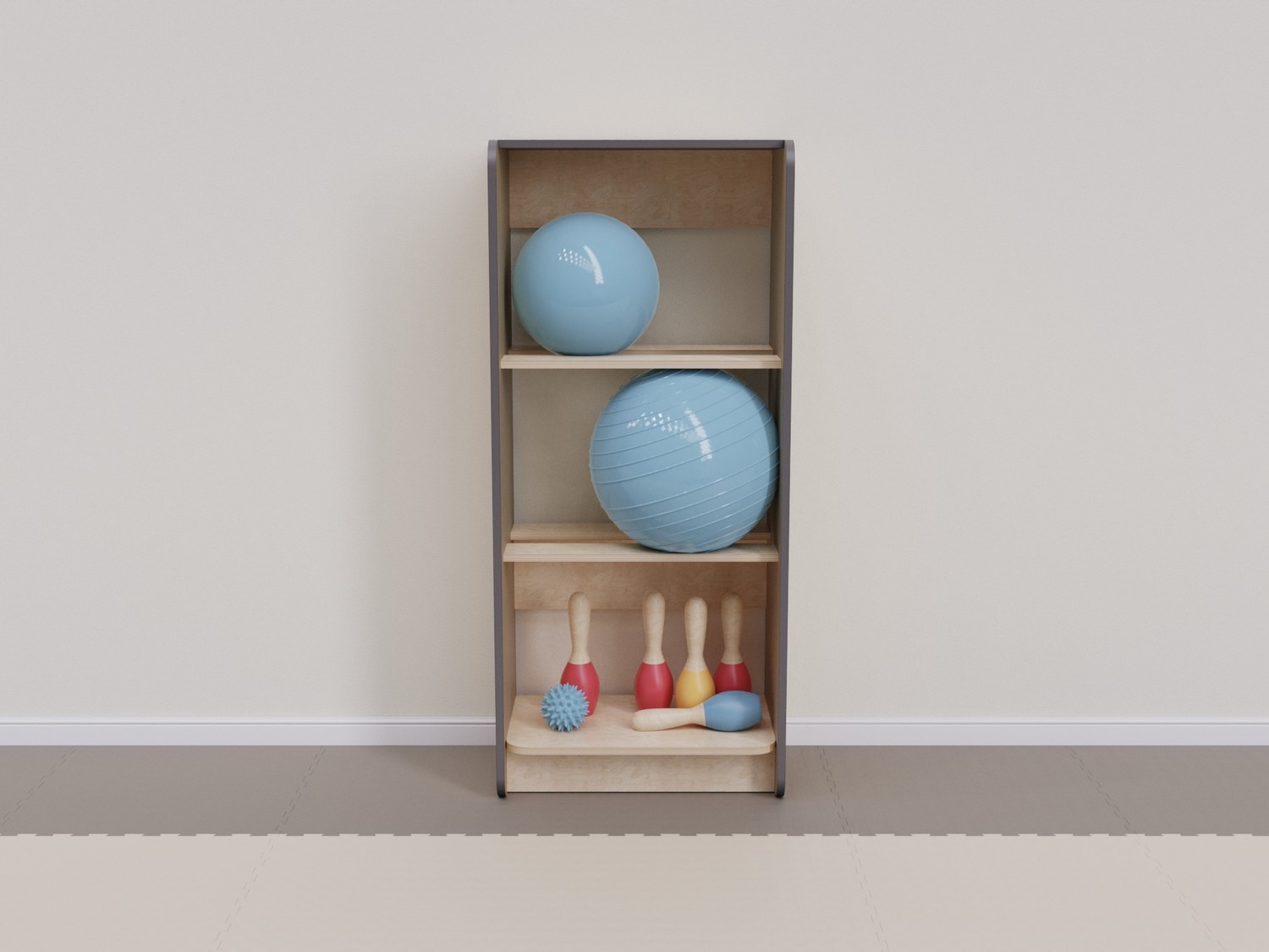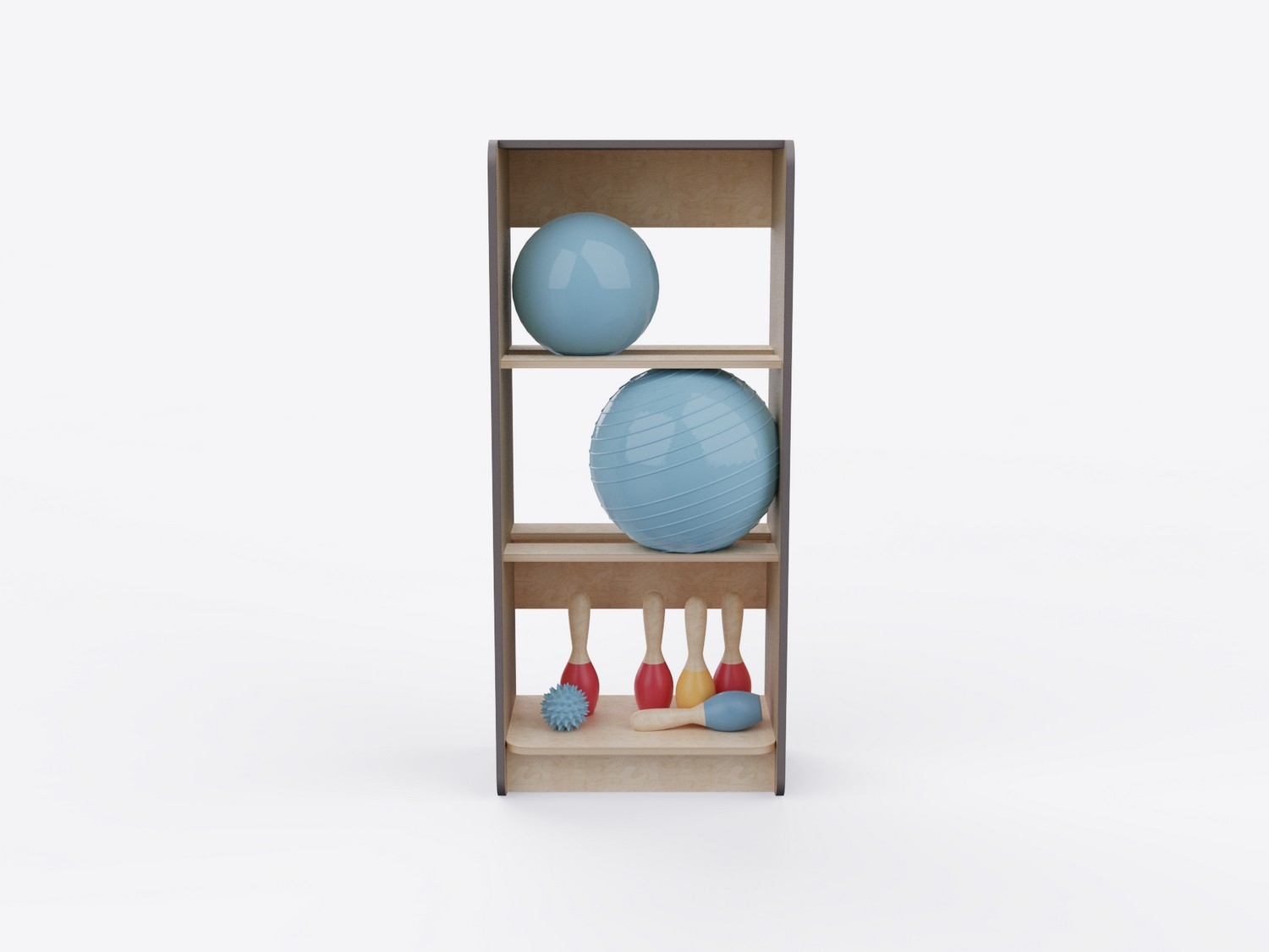 Стеллаж выполнен из высококачественных и прочных материалов, безопасных для использования детьми. Соответствует актуальным ГОСТам на детскую мебель и инвентарь для спортивных залов, требованиям СанПиН и пожарной безопасности, рекомендациям ФОП ДО по созданию развивающей среды для детей. Гладкие поверхности просты в уходе: достаточно влажной уборки для поддержания высокого уровня гигиены.