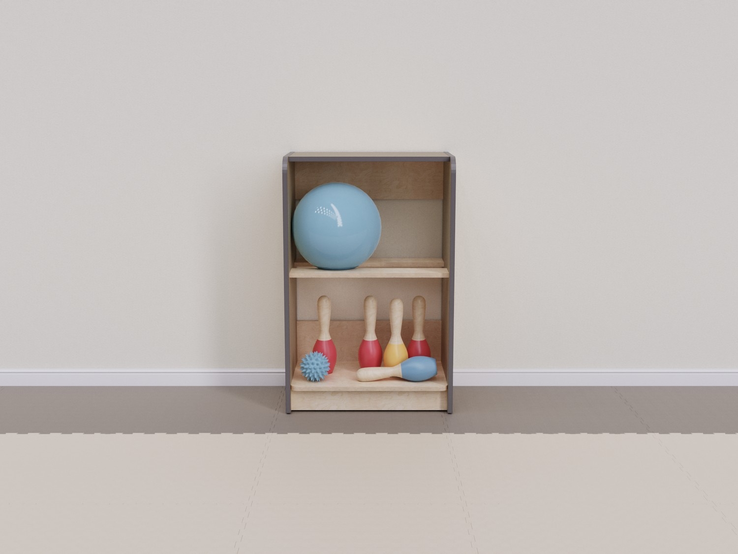 Стеллаж выполнен из высококачественных и прочных материалов, безопасных для использования детьми. Соответствует актуальным ГОСТам на детскую мебель и инвентарь для спортивных залов, требованиям СанПиН и пожарной безопасности, рекомендациям ФОП ДО по созданию развивающей среды для детей. Гладкие поверхности просты в уходе: достаточно влажной уборки для поддержания высокого уровня гигиены.