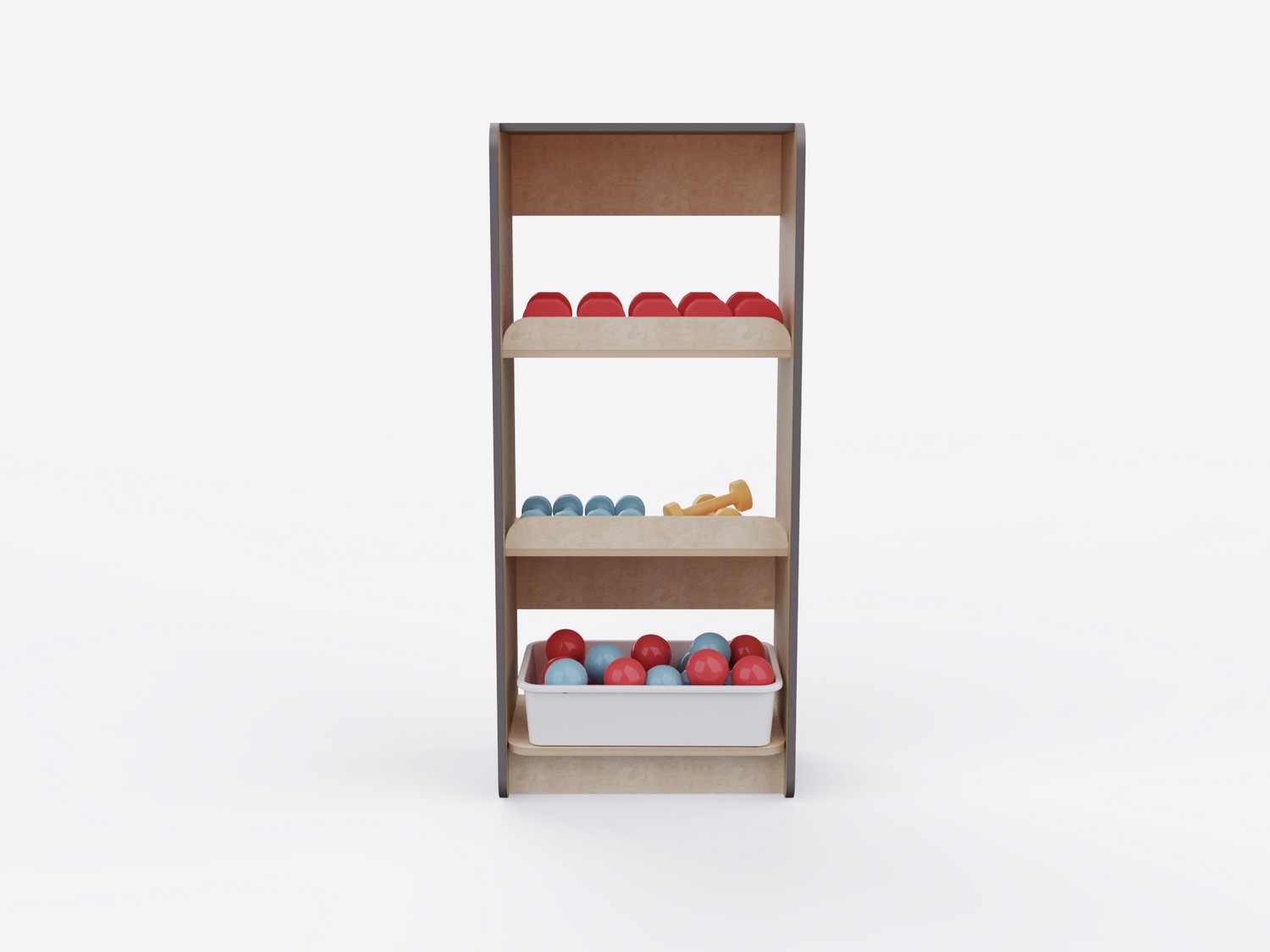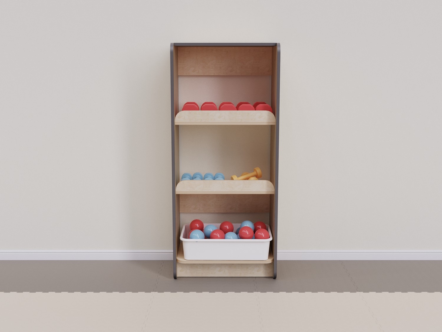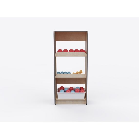 Стеллаж выполнен из высококачественных и прочных материалов, безопасных для использования детьми. Соответствует актуальным ГОСТам на детскую мебель и инвентарь для спортивных залов, требованиям СанПиН и пожарной безопасности, рекомендациям ФОП ДО по созданию развивающей среды для детей. Гладкие поверхности просты в уходе: достаточно влажной уборки для поддержания высокого уровня гигиены.