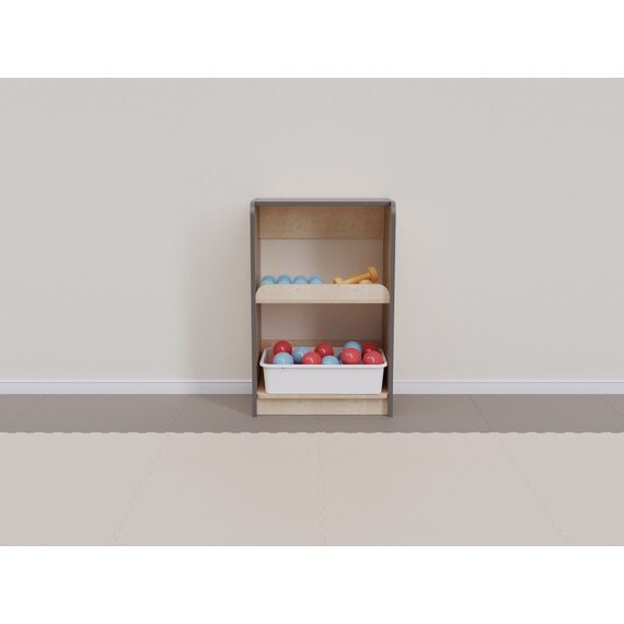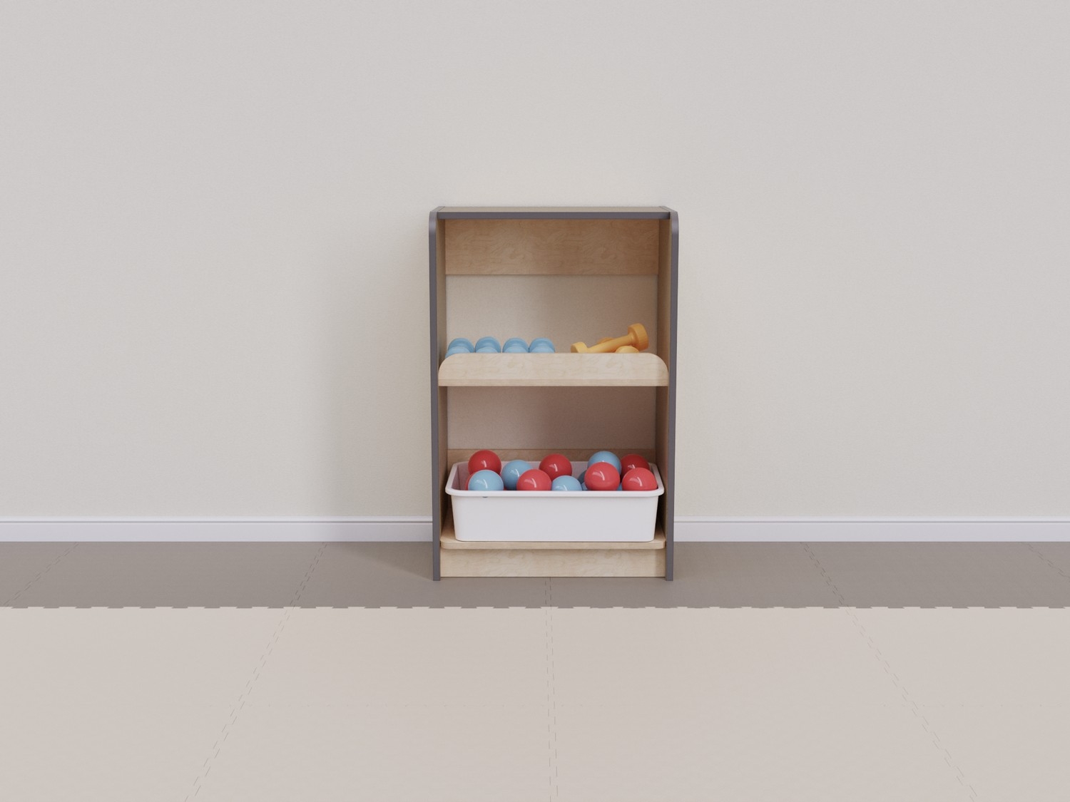Стеллаж выполнен из высококачественных и прочных материалов, безопасных для использования детьми. Соответствует актуальным ГОСТам на детскую мебель и инвентарь для спортивных залов, требованиям СанПиН и пожарной безопасности, рекомендациям ФОП ДО по созданию развивающей среды для детей. Гладкие поверхности просты в уходе: достаточно влажной уборки для поддержания высокого уровня гигиены.