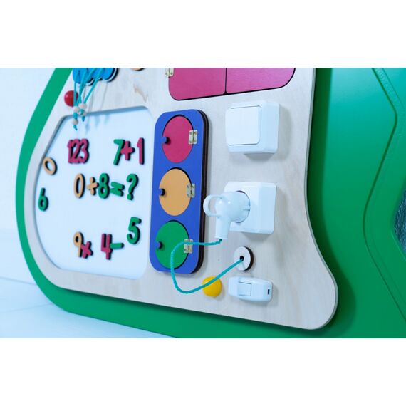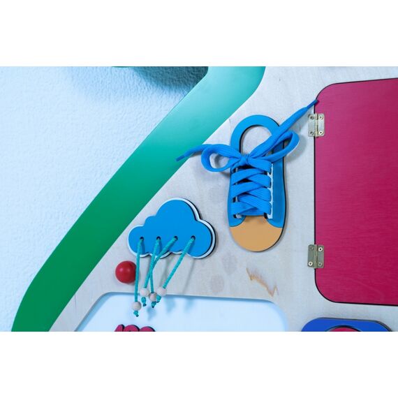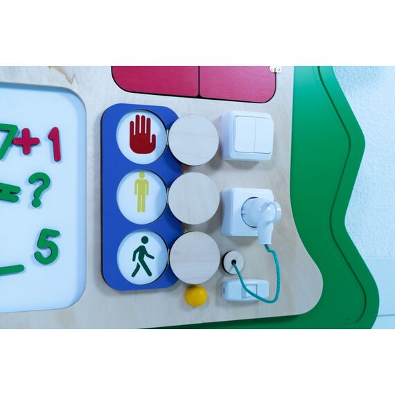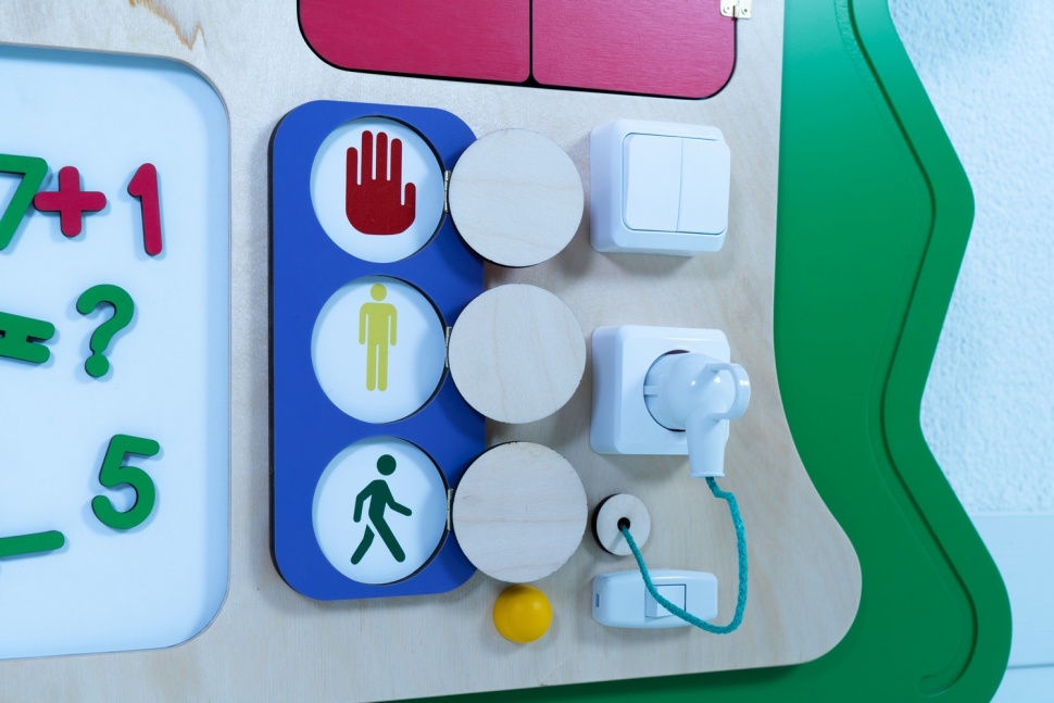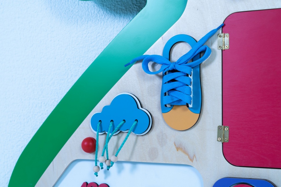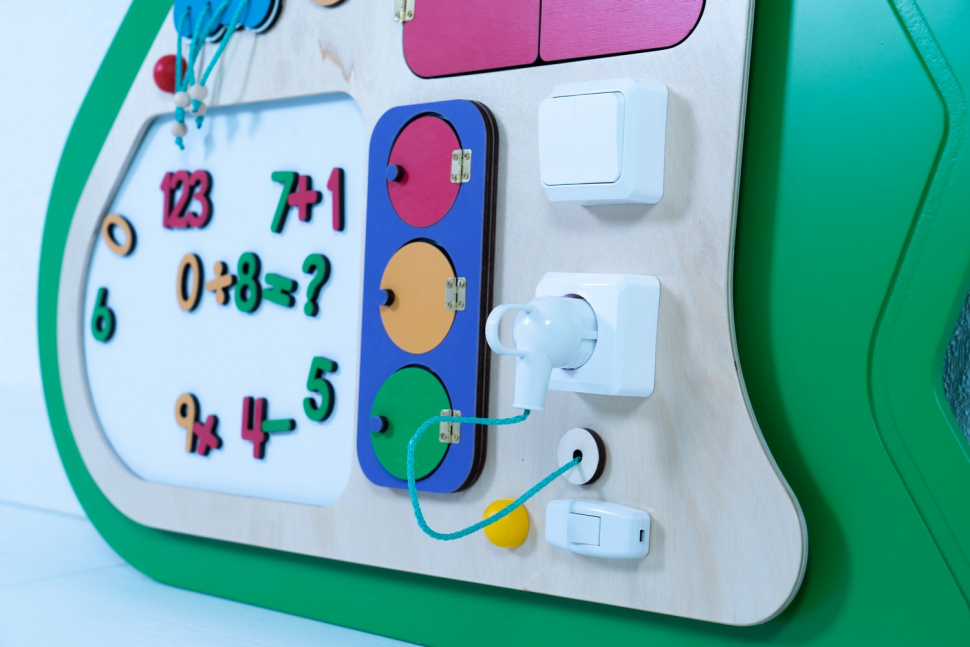 Главная задача бизибордов АЛМА: помочь детям безопасно освоить предметы быта (защелки, крепления, механизмы, переключатели, розетки). На упрощенных тренажерах с привлекательными рисунками дети развивают мелкую моторику, оттачивают мастерство, чтобы в дальнейшем применить полученный навык на практике.