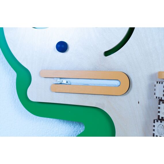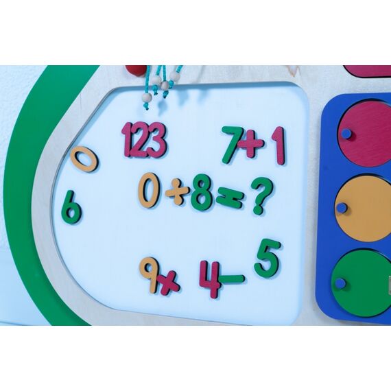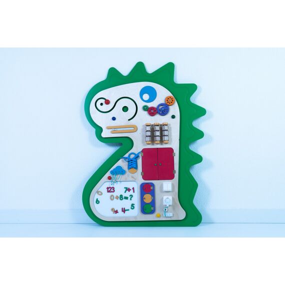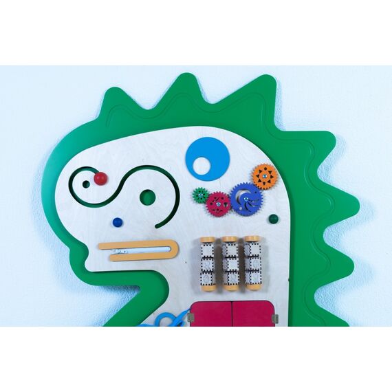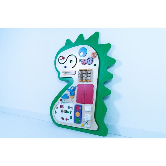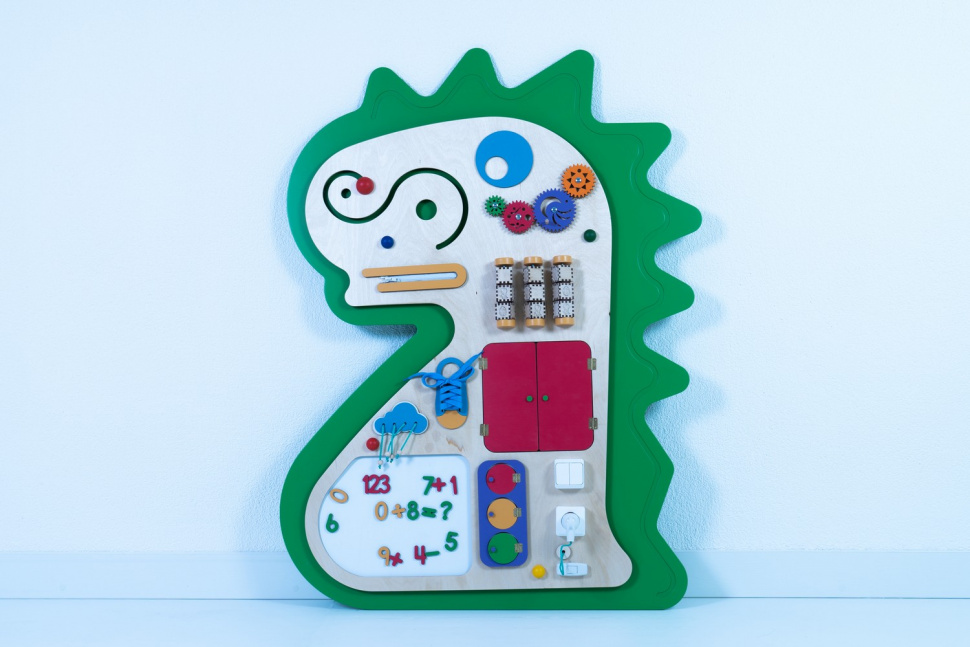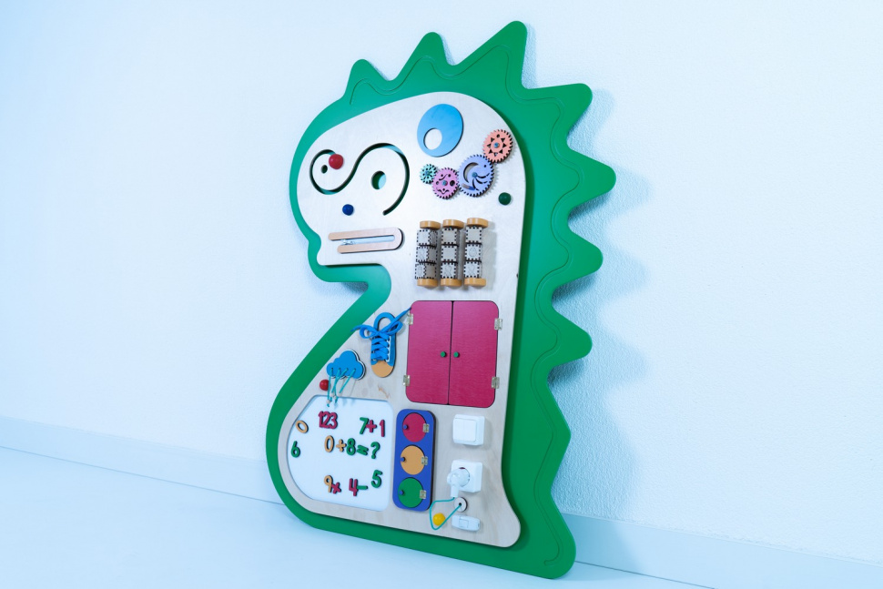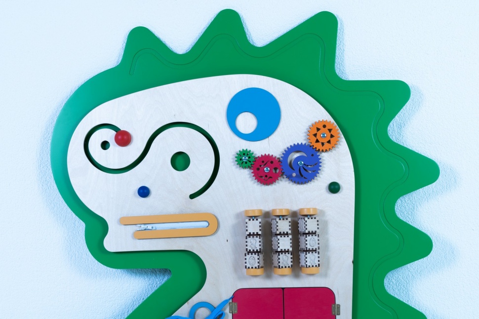 Развивающий сенсорный Бизиборд «Крамп» украсит стену любого образовательного учреждения. Необычный внешний вид непременно привлечет внимание детей, а встроенные развивающие элементы займут их на долгое время.