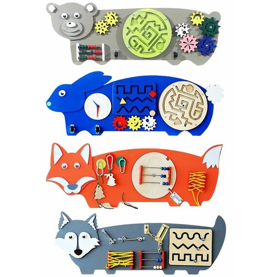 Набор бизибордов «Лесные жители» (заяц, лиса, волк, медведь)