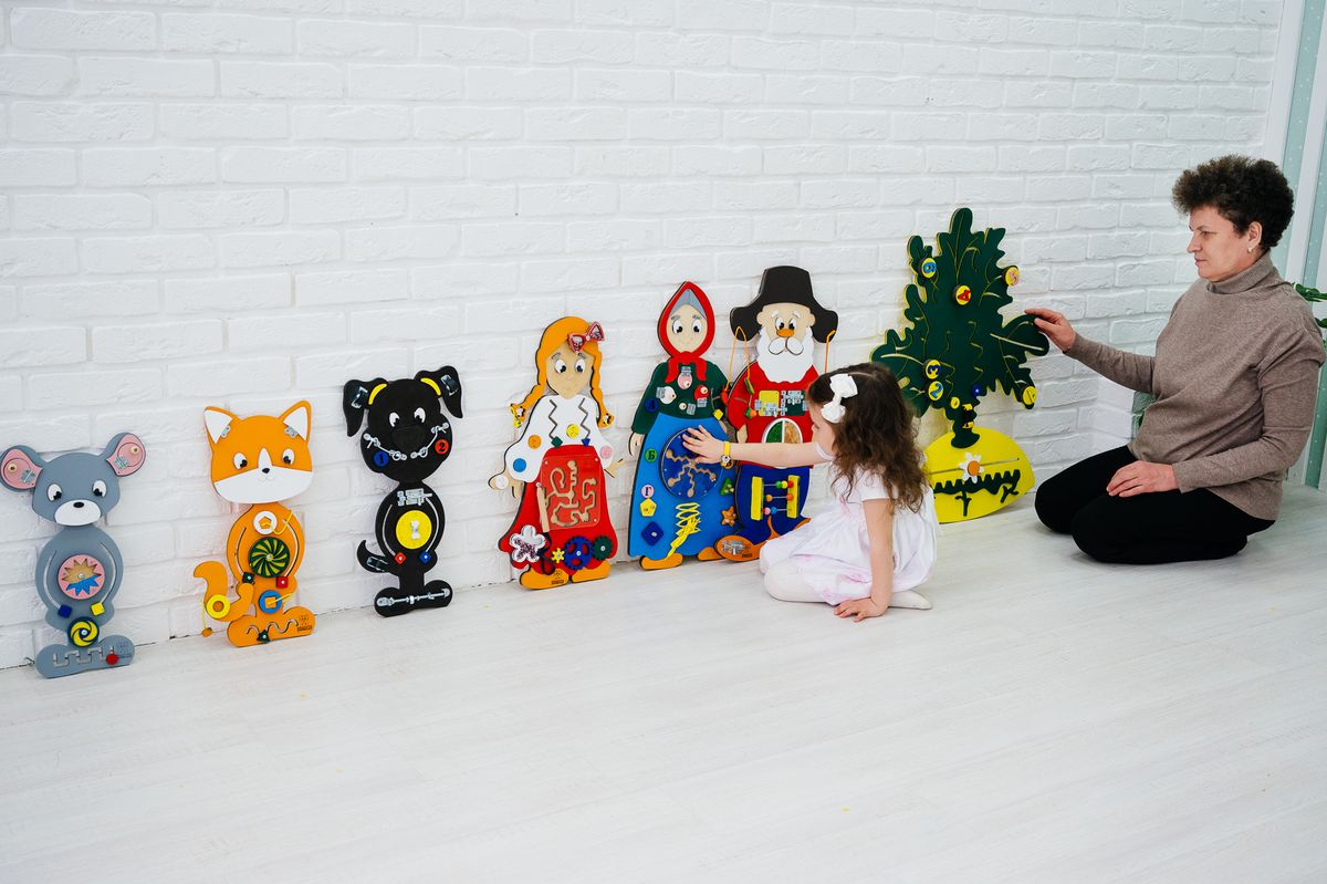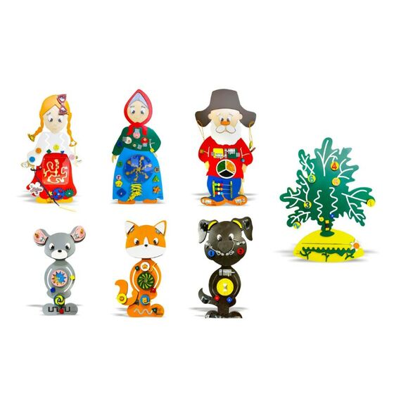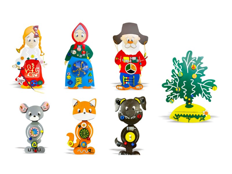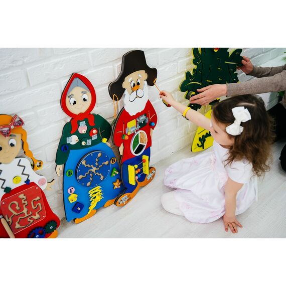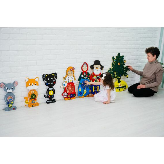 Набор состоит из семи бизибордов, представляющих героев русской народной сказки. Используя набор, ребенок может лучше понять сюжет и запомнить всех героев, включая не только главных, но и второстепенных. Это поможет ему понимать и другие сказки. Набор подходит для детей в возрасте от 1 до 7 лет.