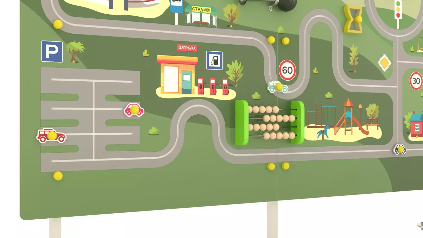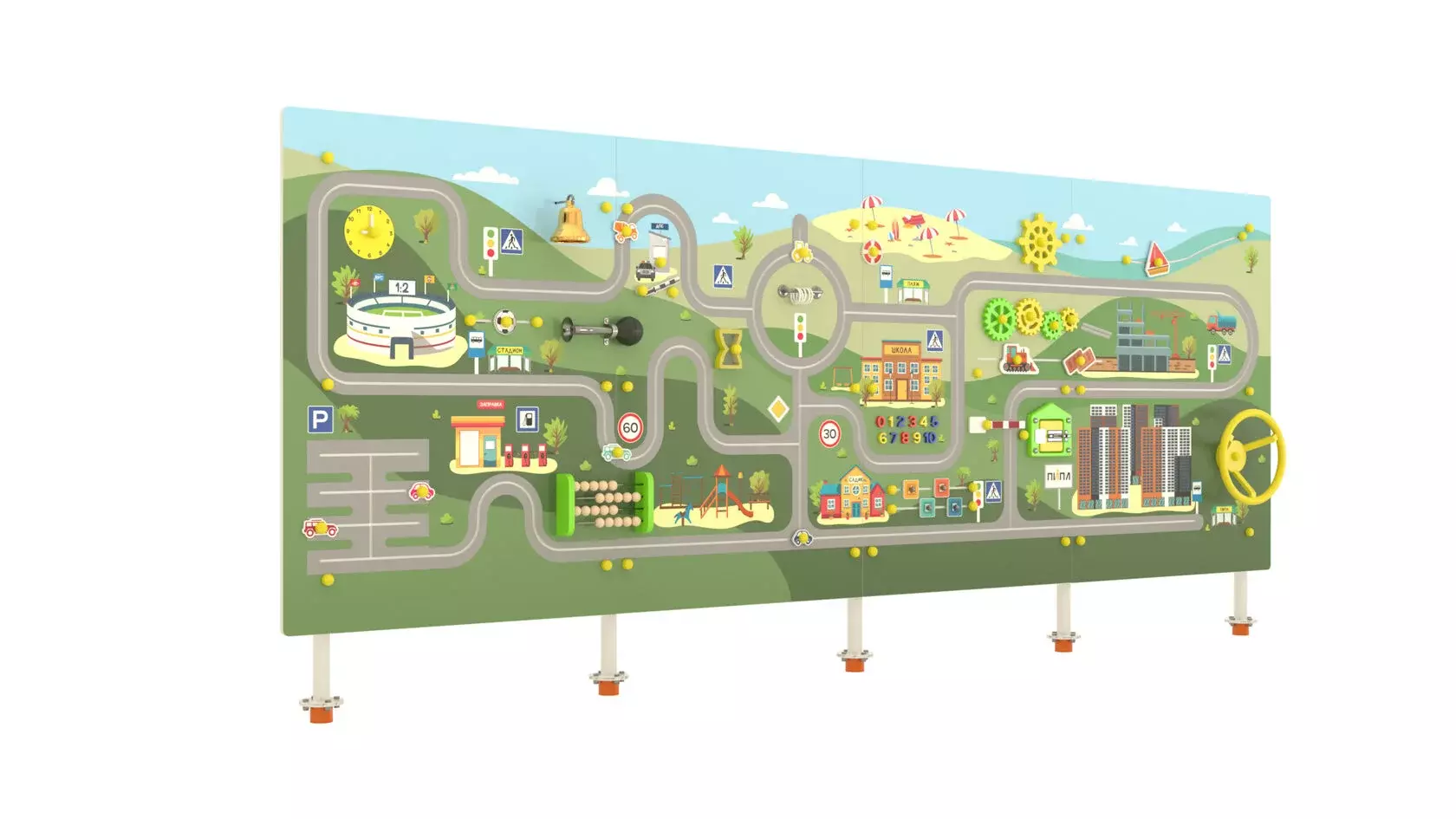 - Яркий дизайн и функциональность – привлекает внимание детей, органично вписывается в игровые зоны и служит украшением территории, одновременно выполняя обучающую роль.