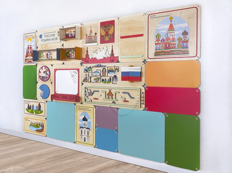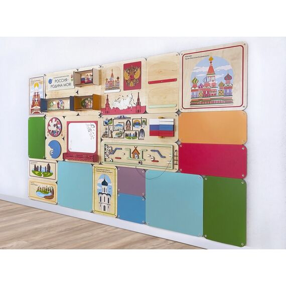 Набор дополнительных модулей для комбинации с дидактическими настенными панелями АЛМА. Отличное интерьерное решение для оформления помещений в едином стиле.