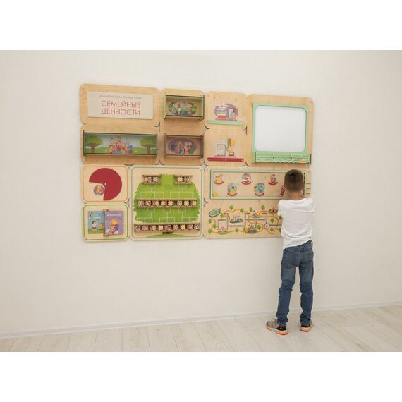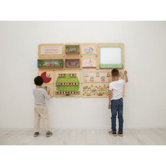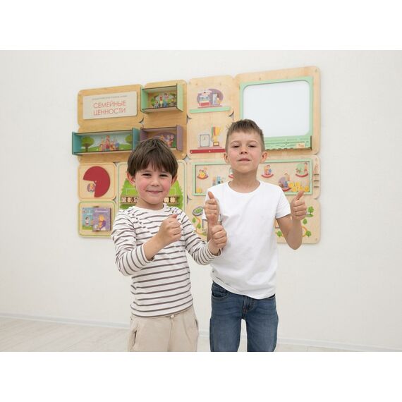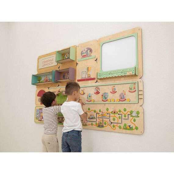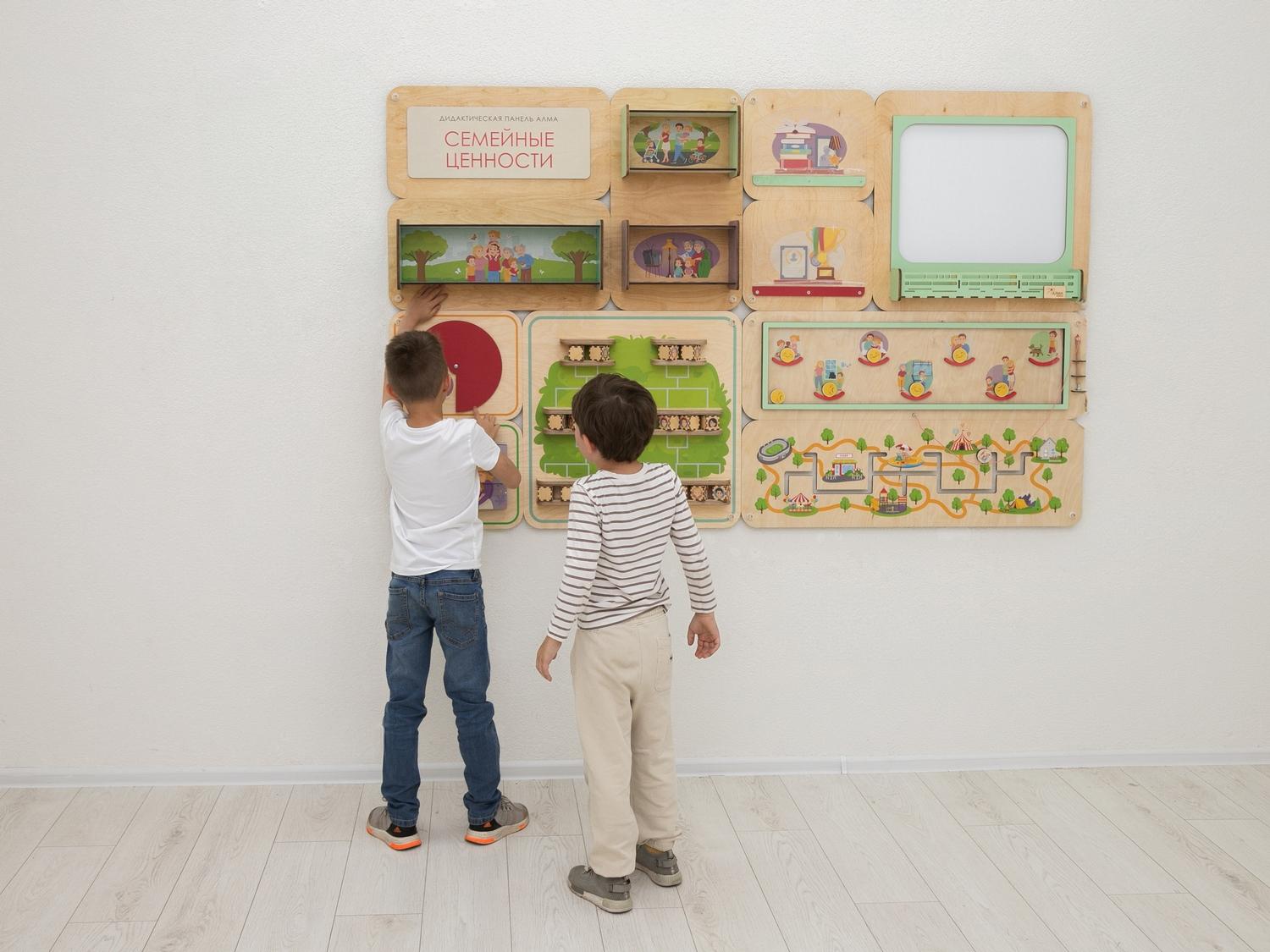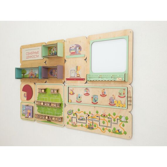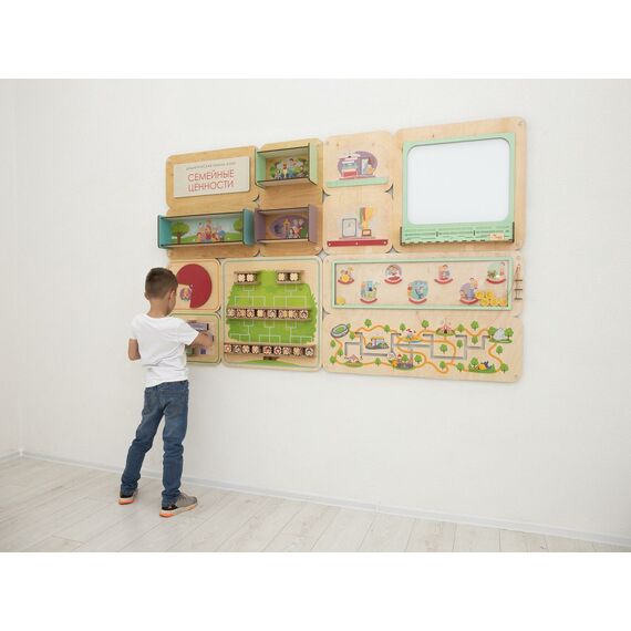 Настенная развивающая панель создана в поддержку «Года семьи» и с целью формирования семейных ценностей у детей от 3 до 12-14 лет. Мы учли все принципы организации предметно-пространственной среды в образовательной организации.