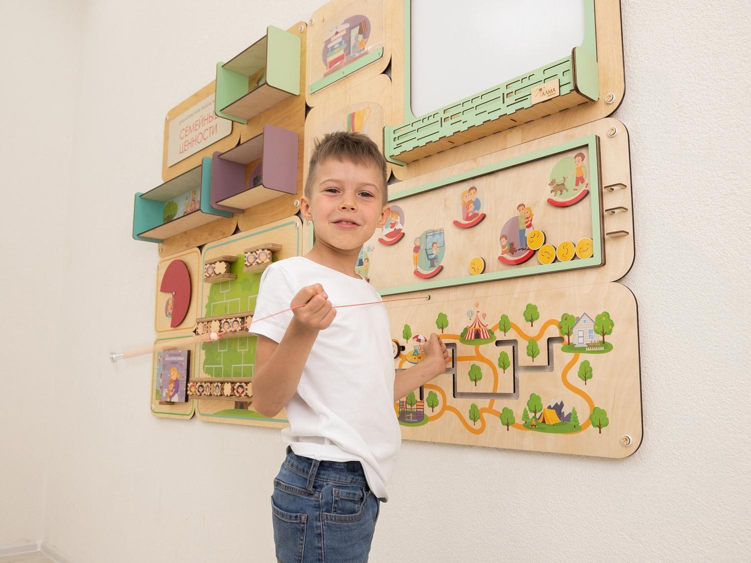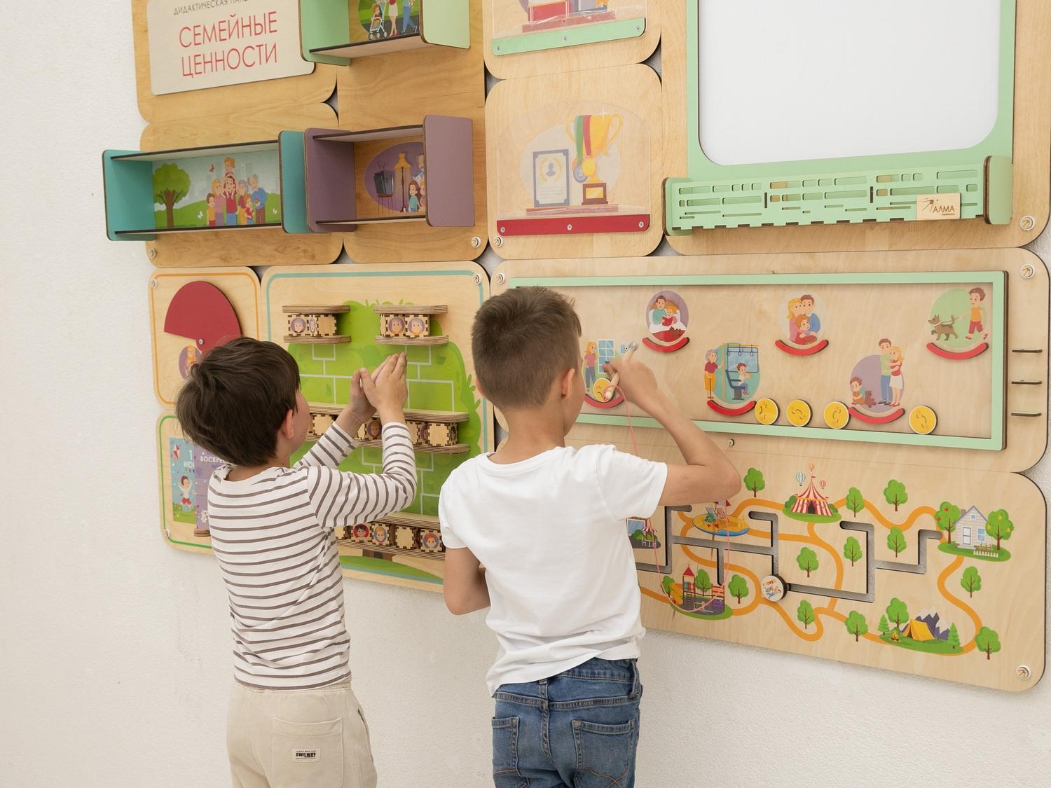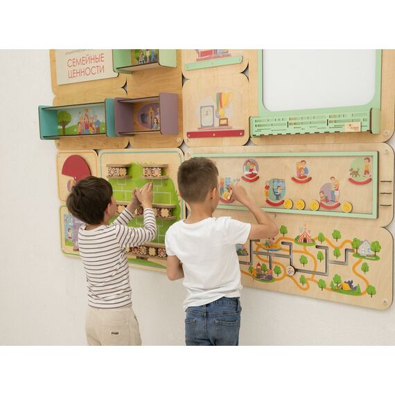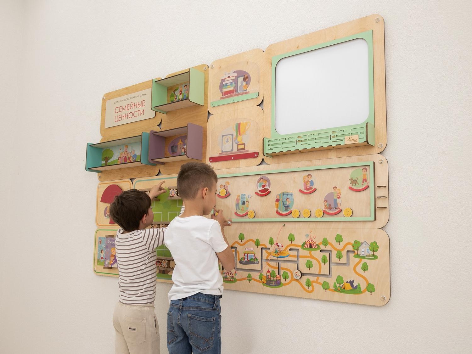 Настенная развивающая панель создана в поддержку «Года семьи» и с целью формирования семейных ценностей у детей от 3 до 12-14 лет. Мы учли все принципы организации предметно-пространственной среды в образовательной организации.