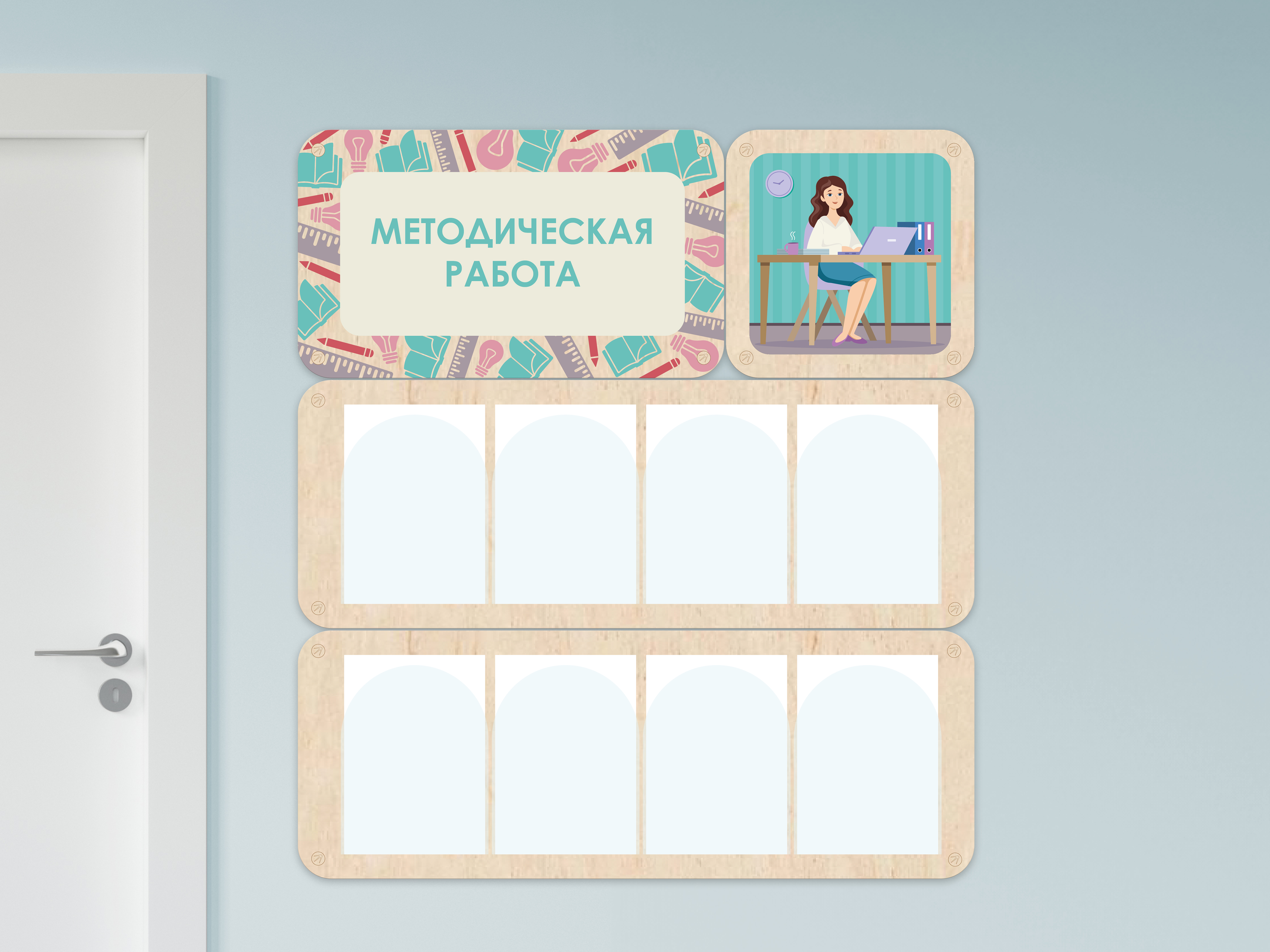 — Это инструмент организации пространства и коммуникации с родителями, который помогает учреждению работать продуктивнее и прозрачнее. В акриловых карманах можно размещать печатную информацию о расписании, советы родителям, объявления о мероприятиях, новости и другую актуальную информацию.