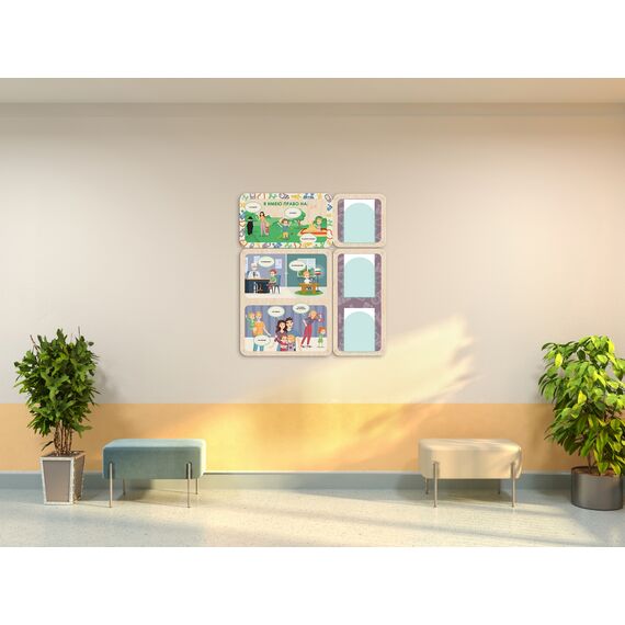 Как совместить полезные материалы для образования детей и стильный дизайн стен – эту задачу отлично реализуют информационные стенды «Права ребёнка», которые можно размещать на стенах коридоров и холлов в детских садах и организациях дополнительного образования. Яркие доступные картинки понятны для детей, а печатные сведения в прозрачных органайзерах – для их родителей.