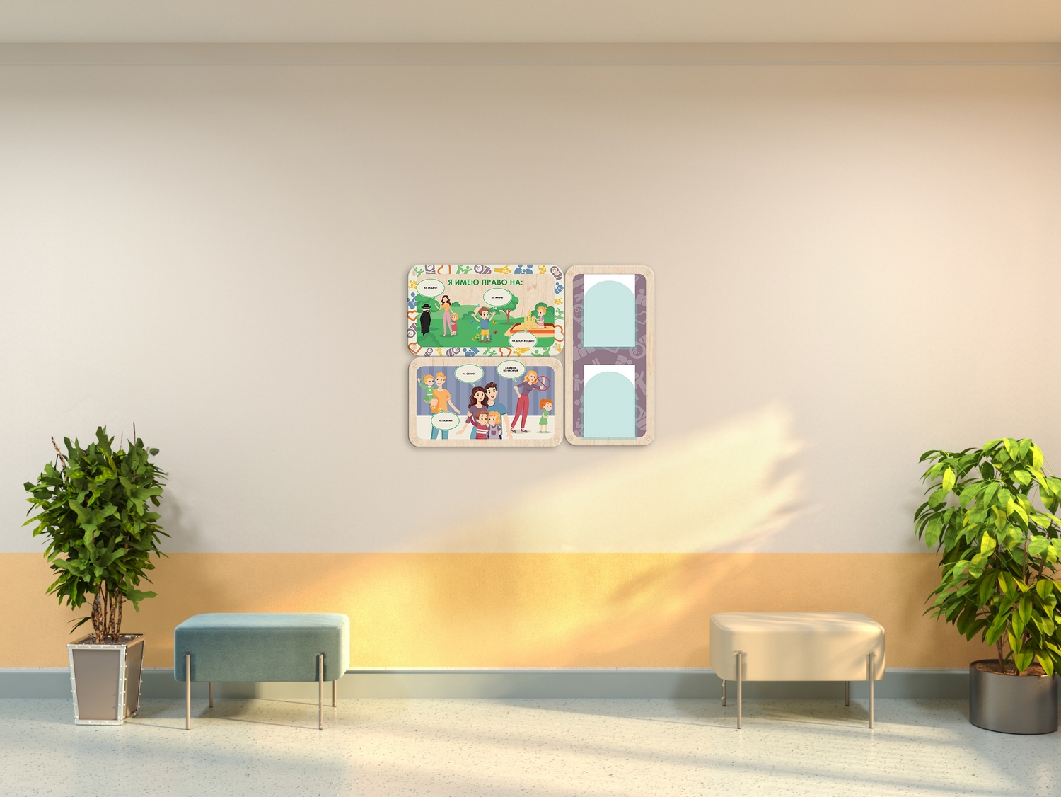 Как совместить полезные материалы для образования детей и стильный дизайн стен – эту задачу отлично реализуют информационные стенды «Права ребёнка», которые можно размещать на стенах коридоров и холлов в детских садах и организациях дополнительного образования. Яркие доступные картинки понятны для детей, а печатные сведения в прозрачных органайзерах – для их родителей.