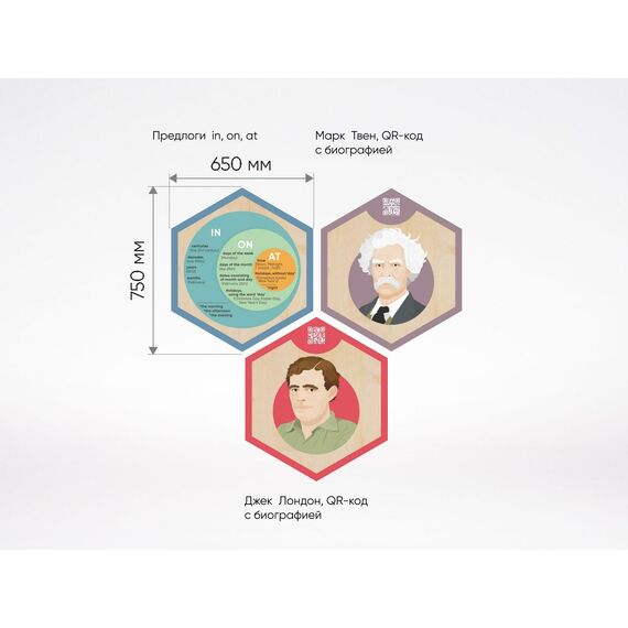 В комплект входит 10 шестигранников разных размеров. Каждый содержит обучающую информацию. Благодаря QR-кодам дети могут подробнее узнать о выдающихся личностях, изображённых на портретах и интересные факты - стоит только навести на них телефон.