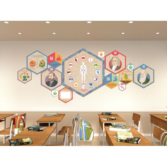 Образовательные панели по биологии для оформления стен школьных учреждений. Выполняют две функции: декор и соответствующее предмету обучение.