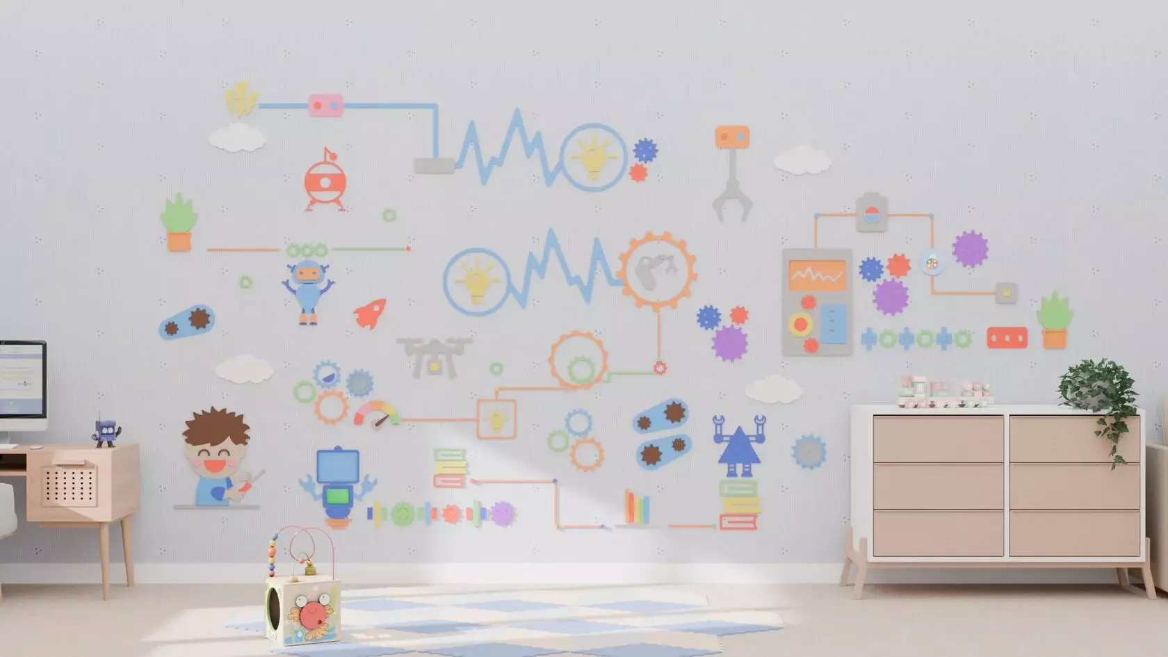 Описание Настенная панель мобильная "Робототехника" с интерактивными элементами
