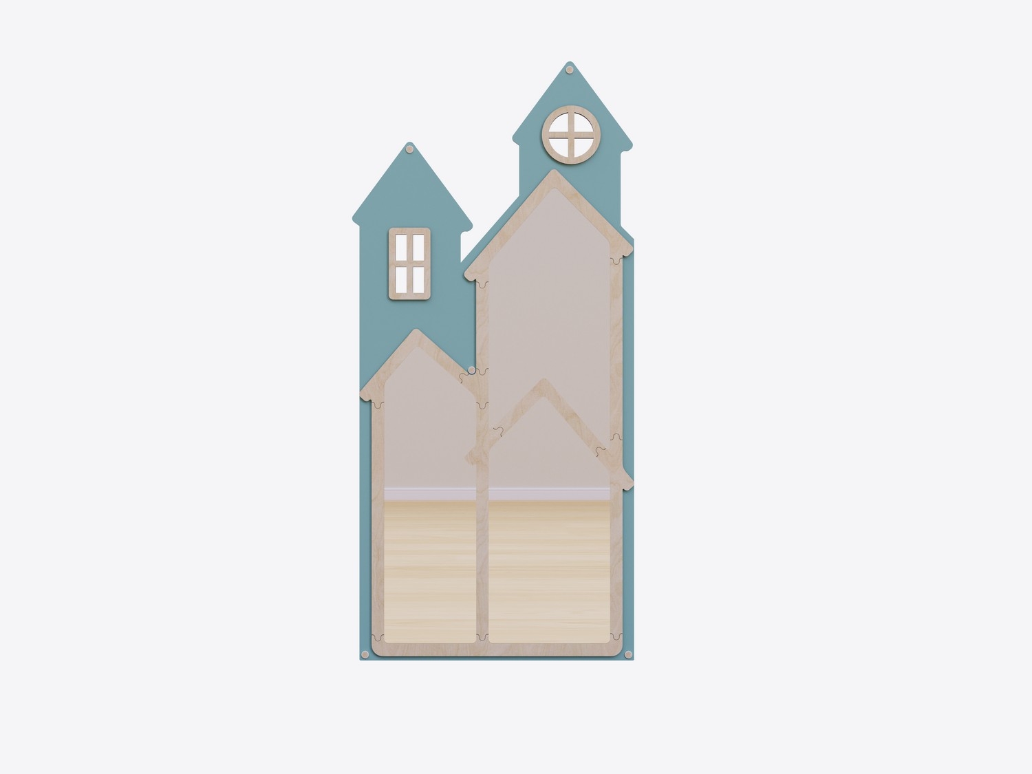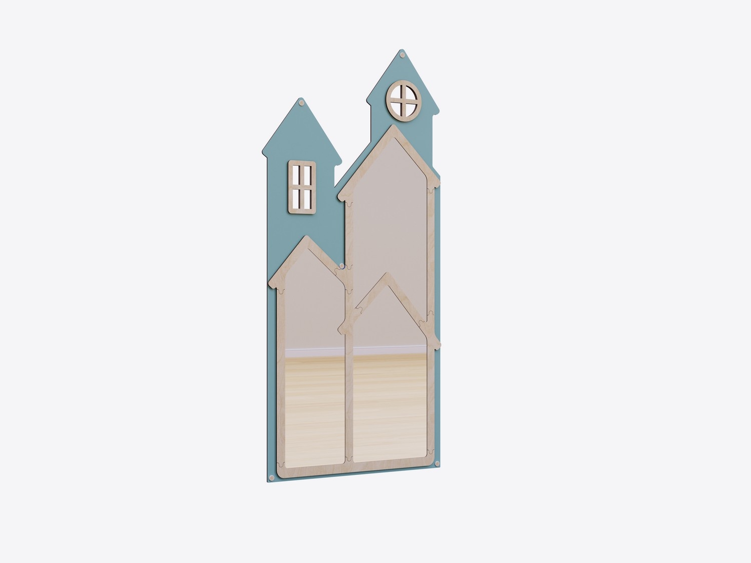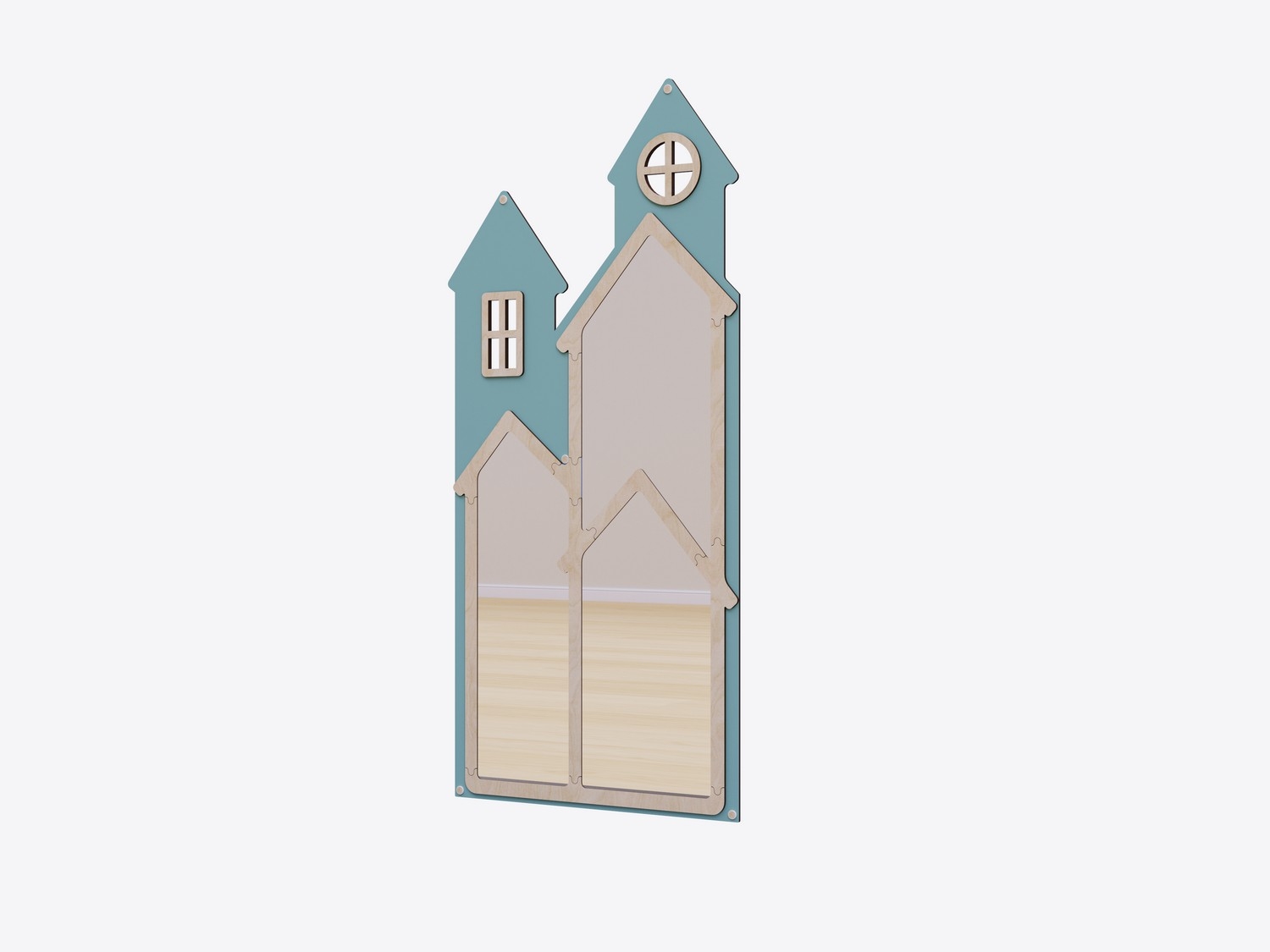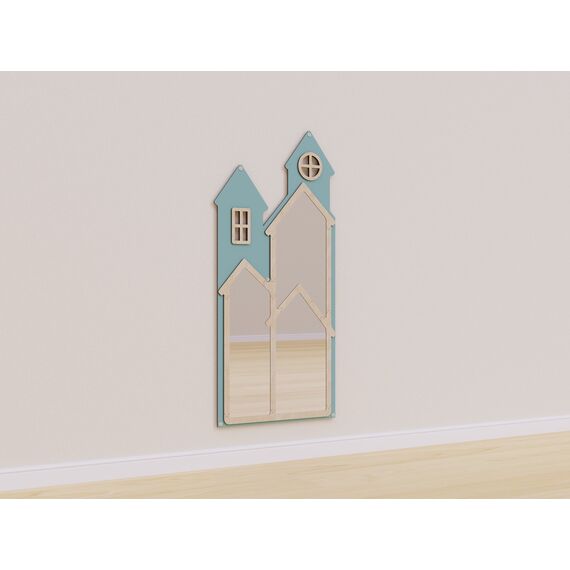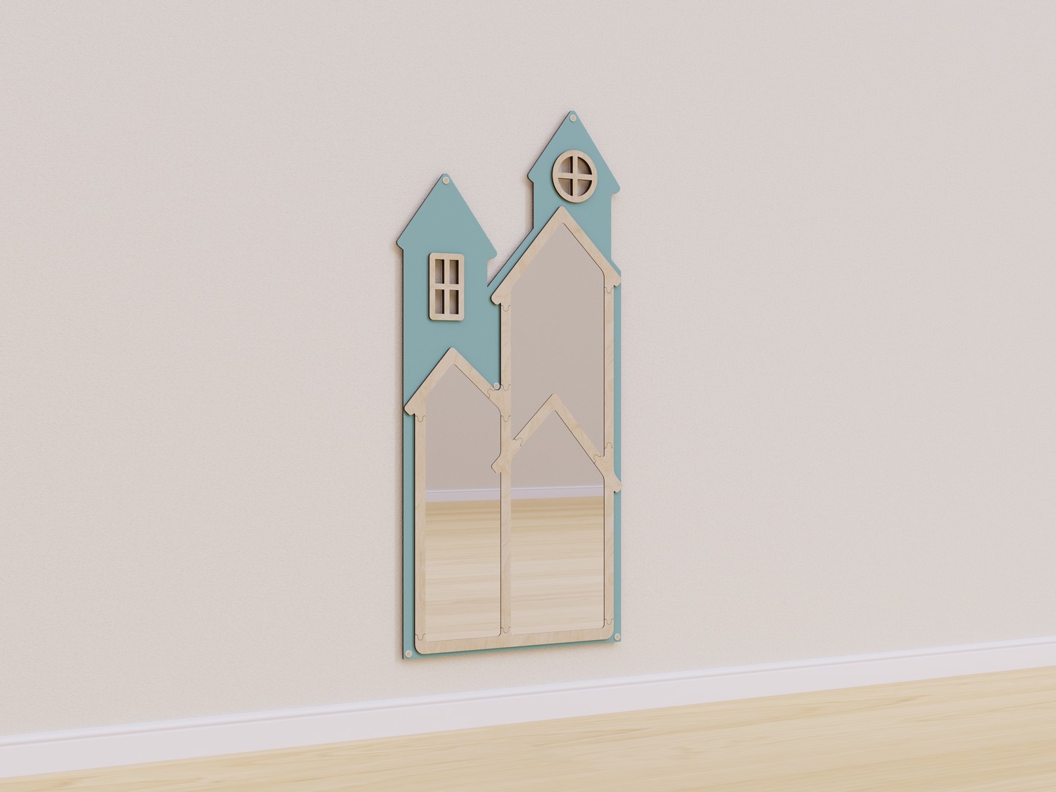Настенная панель с безопасным зеркалом «Домик» (голубой) [А603]
