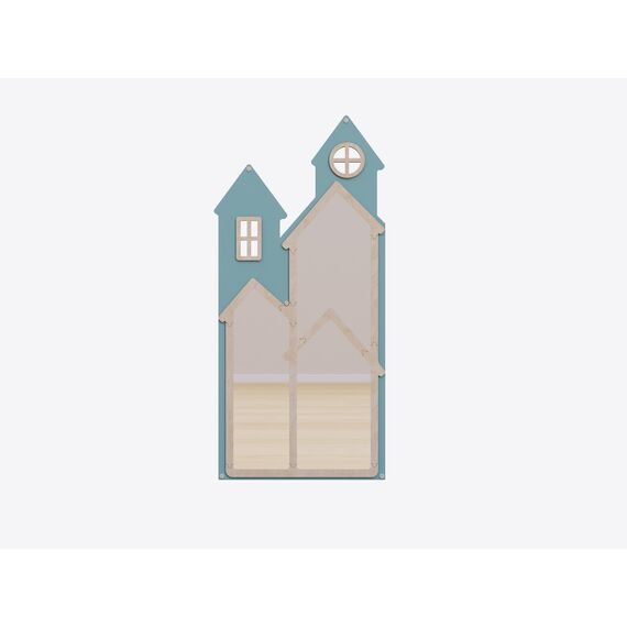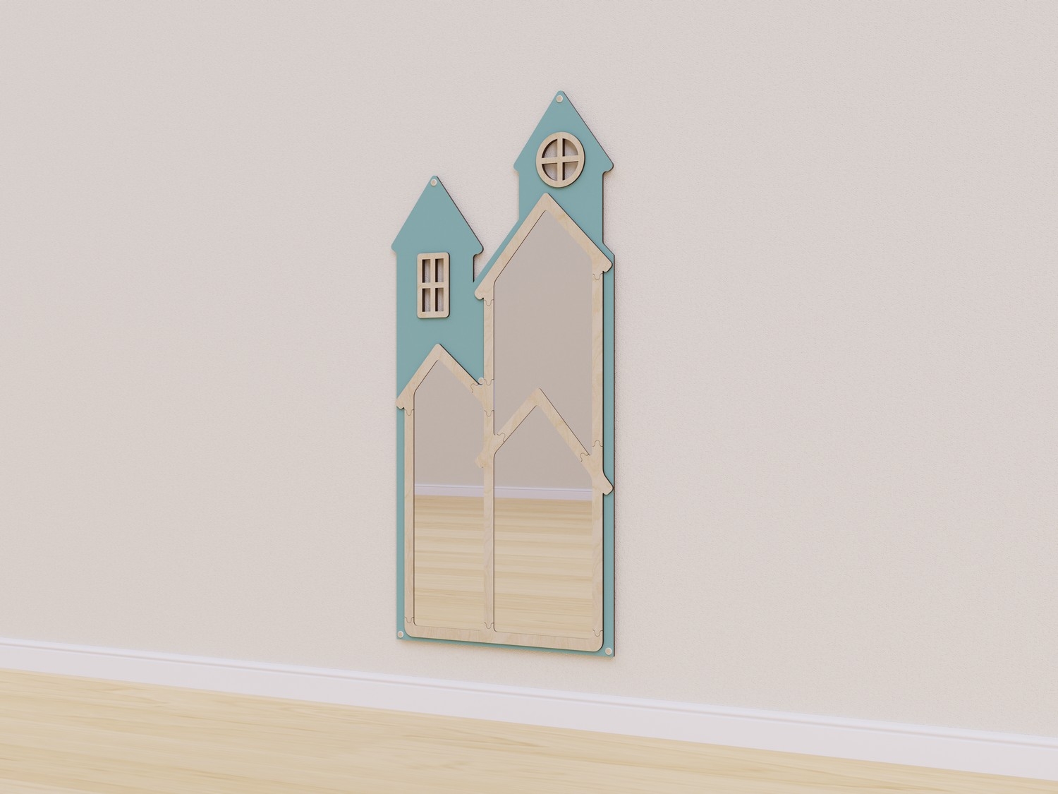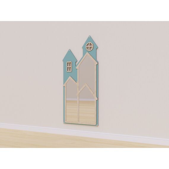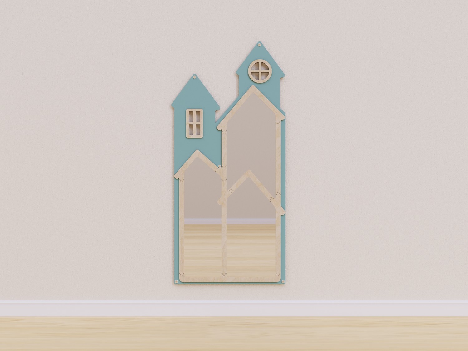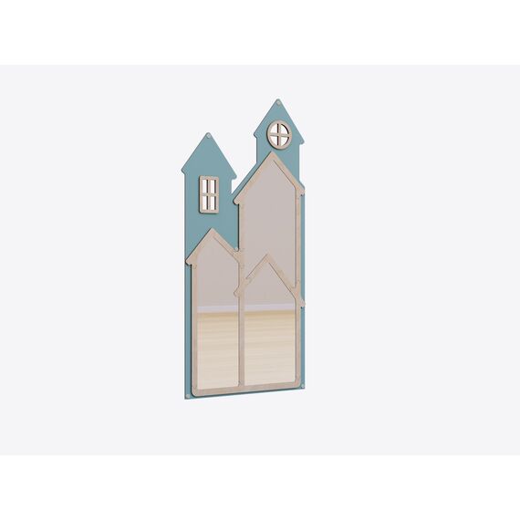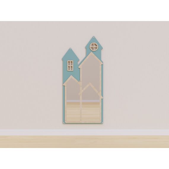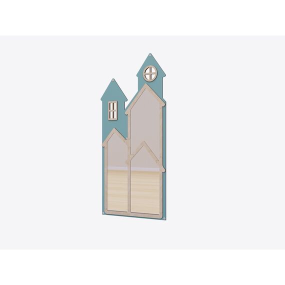 Настенная панель с безопасным зеркалом «Домик» (голубой) [А603]