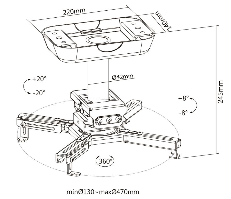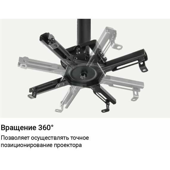 Потолочный кронштейн Exell EXi-P4500 для проектора, 245 мм, до 45 кг, наклон +20°/-20°, поворот +8°/-8°, вращение 360°, черный