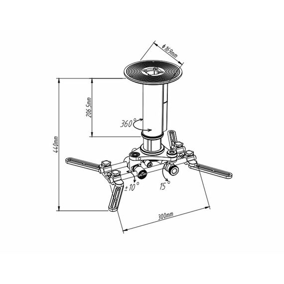 Потолочный кронштейн для проектора Exell EXi-P5000 290-440 мм, до 50 кг, наклон 28°, поворот 15°, вращение 360°, алюминий